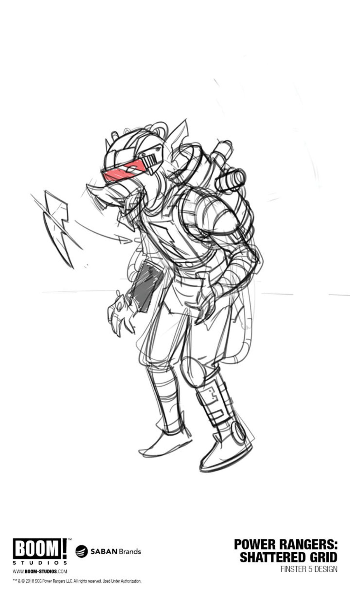 Ho pensato che il braccio destro di Drakkon sarebbe stato un Finster segnato dagli eventi della vita, potenziato con componenti di Alpha 5. Il suo nome è Finster 5, e fondamentalmente è una versione cyborg di Finster. Le origini di questa bizzarra fusione sono state molto divertenti da costruire e hanno dato a Daniele l'opportunità di realizzare qualcosa di davvero interessante e con un design unico.