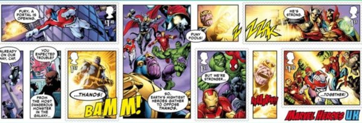 La collezione, acquistabile dal prossimo 14 marzo presso gli uffici postali del Regno Unito, sarà composta da quindici pezzi, tra cui figurano Spider-Man, Hulk, Thor, Iron Man, Capitan Marvel, Pantera Nera, Doctor Strange e ovviamente i beniamini locali Peggy Carter, Capitan Bretagna e Union Jack.Saranno inoltre disponibili cinque francobolli extra strutturati come tavole a fumetti, i quali andranno a comporre una breve storia intitolata Avengers UK, incentrata su uno scontro tra i Vendicatori e il temibile Thanos.