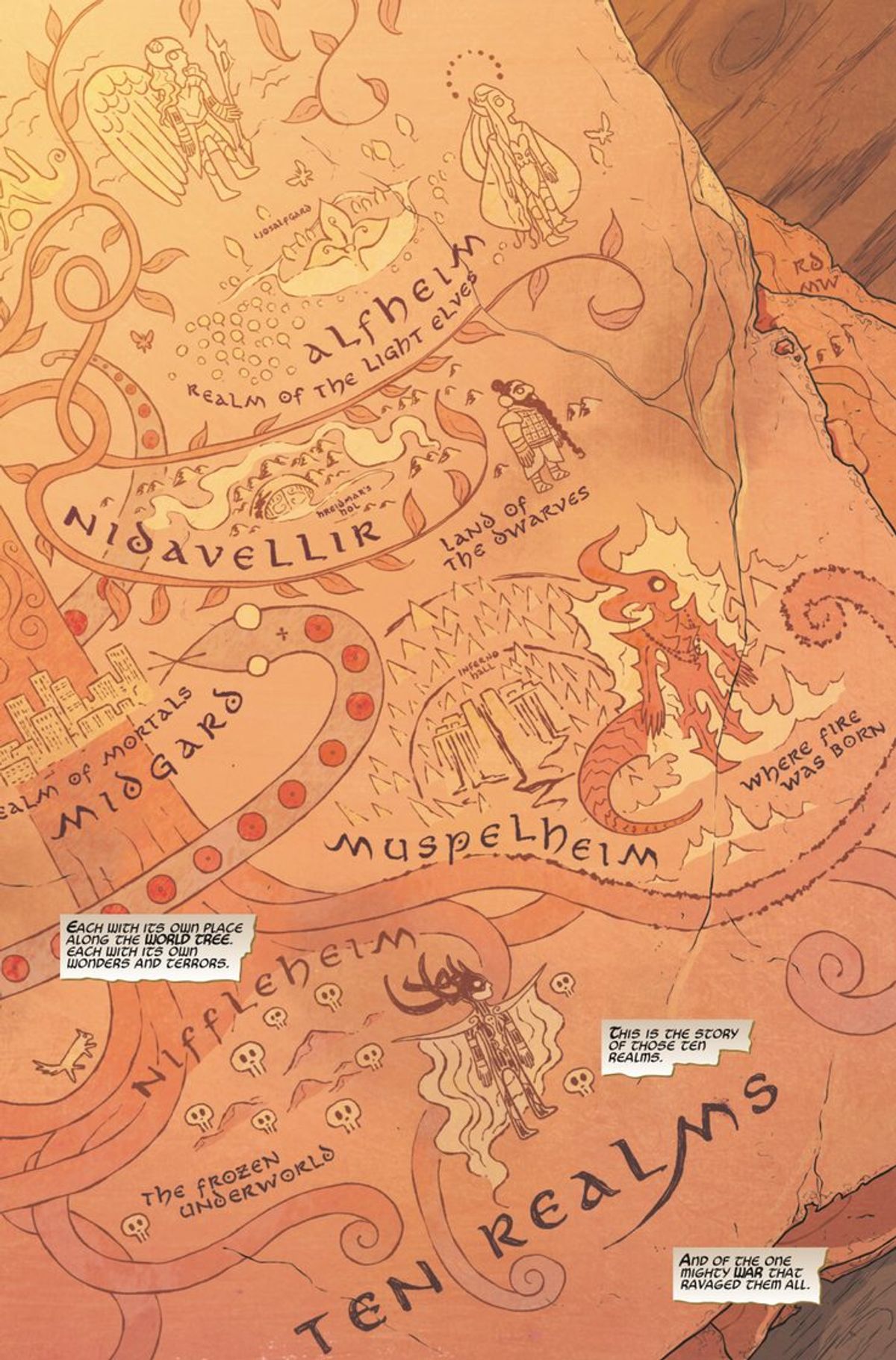Aaron - Per descriverlo con semplicità, Il Signore degli Anelli incontra l'Universo Marvel. Tutti i peggiori villain dei Dieci Reami invadono la Terra e scatenano l'inferno, come potrebbe accadere in una storia di Thor. Ma, come vedremo nell'apertura di War of the Realms, lui non potrà affrontare questa minaccia, quindi sarà la storia di tutti gli eroi. Avengers, Wolverine, Punisher, i Fantastici Quattro. Tutti gli eroi più importanti della Marvel dovranno fare i conti con questioni di solito in stile Thor, a cui non sono abituati.