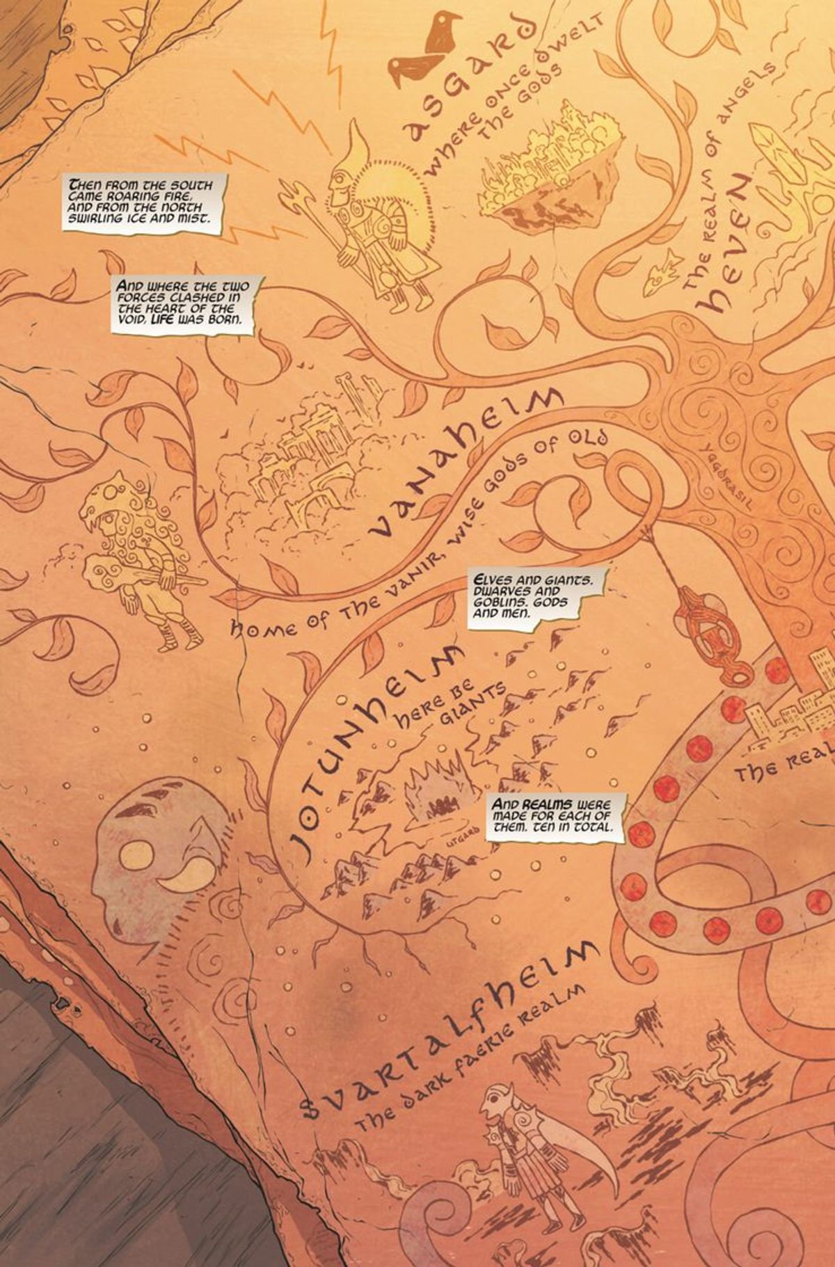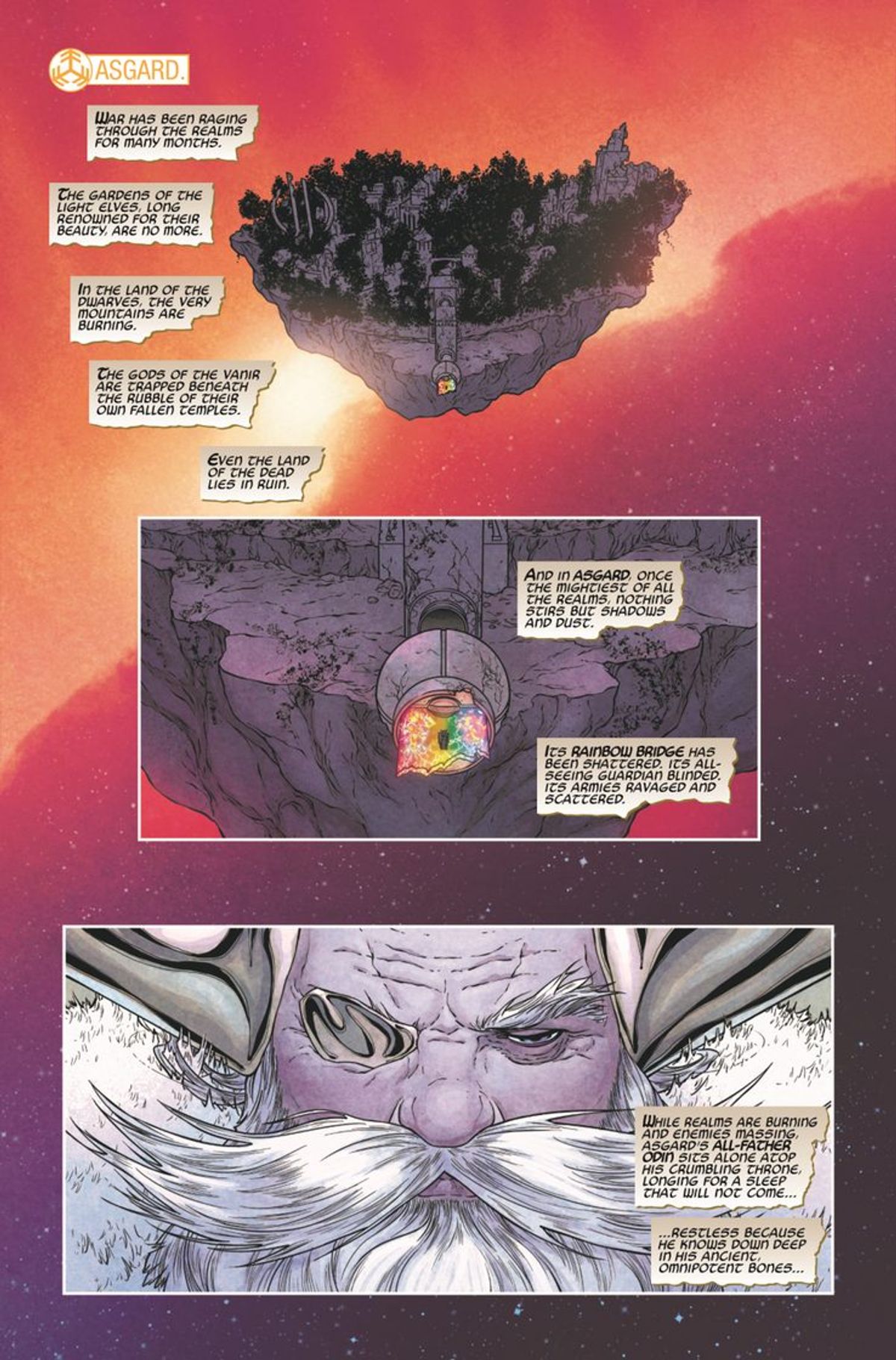 Cebulski - Non voglio anticipare troppo, ma vedremo Asgard e Midgard in relazione tra loro in maniera del tutto inedita. Gli abitanti della Terra saranno un po' più consapevoli di quel che accade ad Asgard e a Thor, di tutto quello che è successo e delle creature che la abitano. E la cosa vale anche al contrario. C'è un doppio stato di consapevolezza che influenzerà tutti gli eventi del prossimo futuro. La storia lascerà delle questioni in sospeso sulla Terra, che verranno approfondite in seguito.