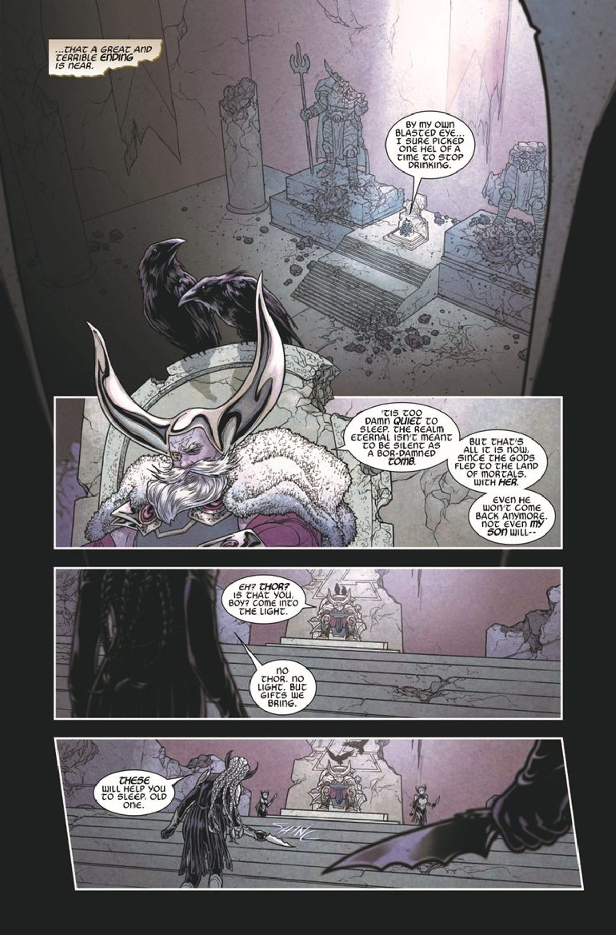 Per quanto riguarda l'abbandono di Thor da parte di Jason, siamo ancora in trattative e stiamo parlando di come vorrà chiudere le sue trame. Ma non avverrà quest'anno. Con War of the Realms, sta raccontando la storia che desiderava da tempo, e ora dovrà capire come continuare a farlo, per poi lasciare. Ogni autore ha una parabola da portare a termine. Lui ci ha consegnato un ciclo incredibile, ma il momento in cui finirà per davvero non lo conosce lui, non lo conosco io, né nessun altro.