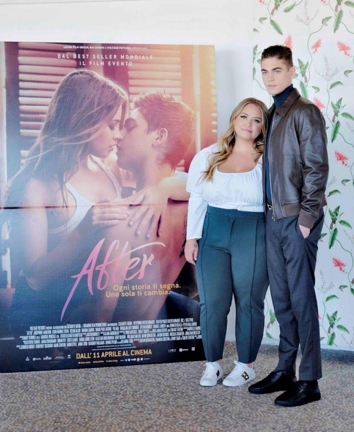 Presenti insieme alla scrittrice anche il protagonista e la protagonista della pellicola, Josephine Langford e Hero Fiennes-Tiffin.