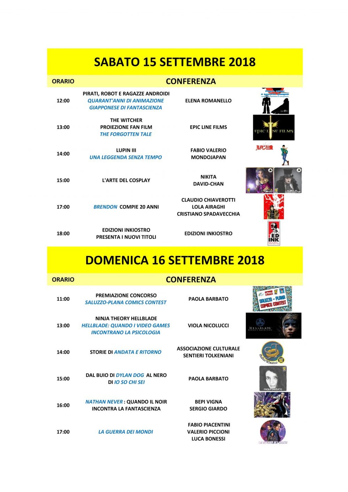 Trovate l'elenco completo sul sito web ufficiale e sulla pagina Facebook della manifestazione, insieme alle altre informazioni sull'evento.Di seguito vi proponiamo la locandina realizzata dal giovane talento Daniele Nereo Ienuso e il comunicato con le conferenze previste.