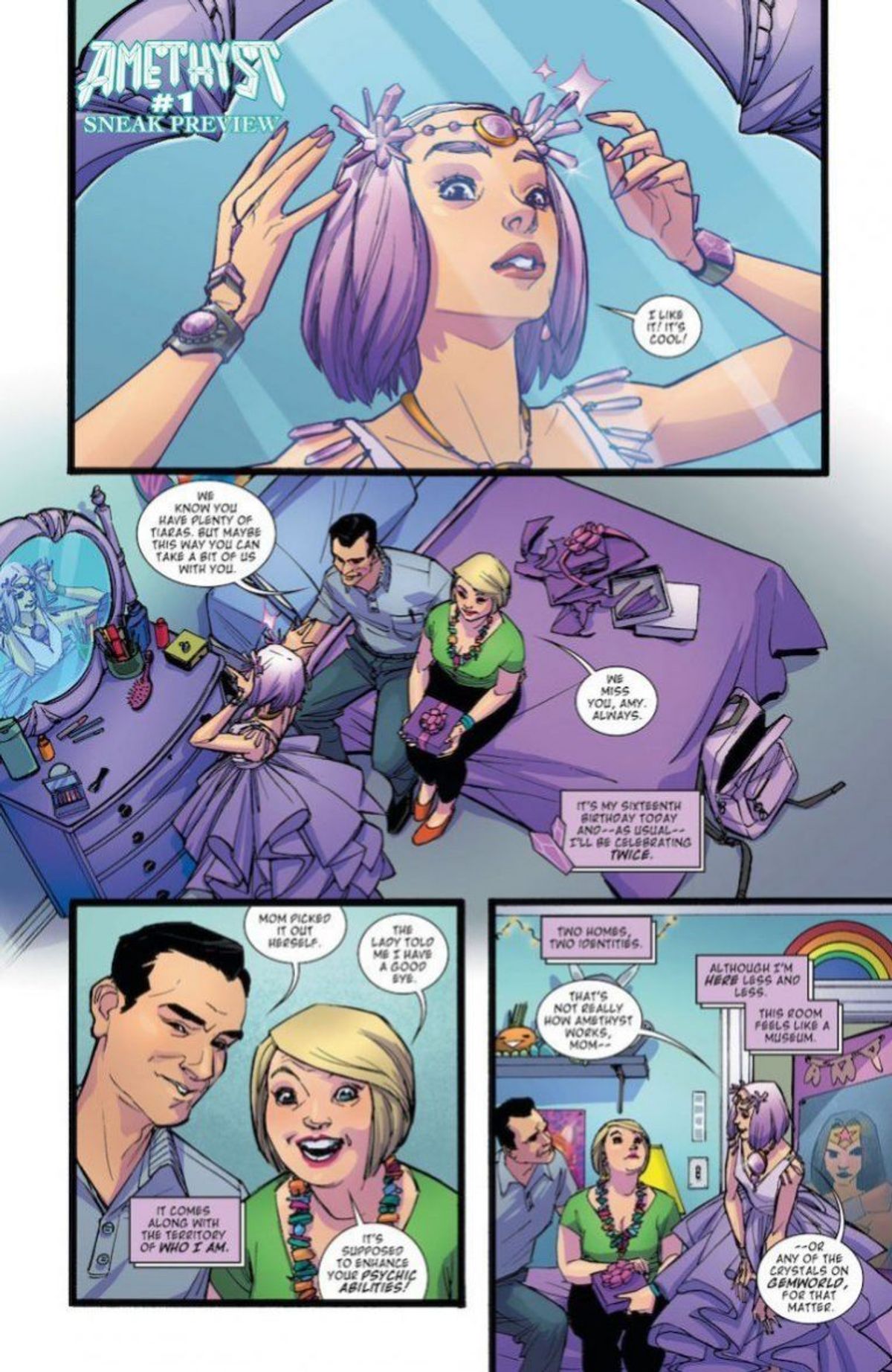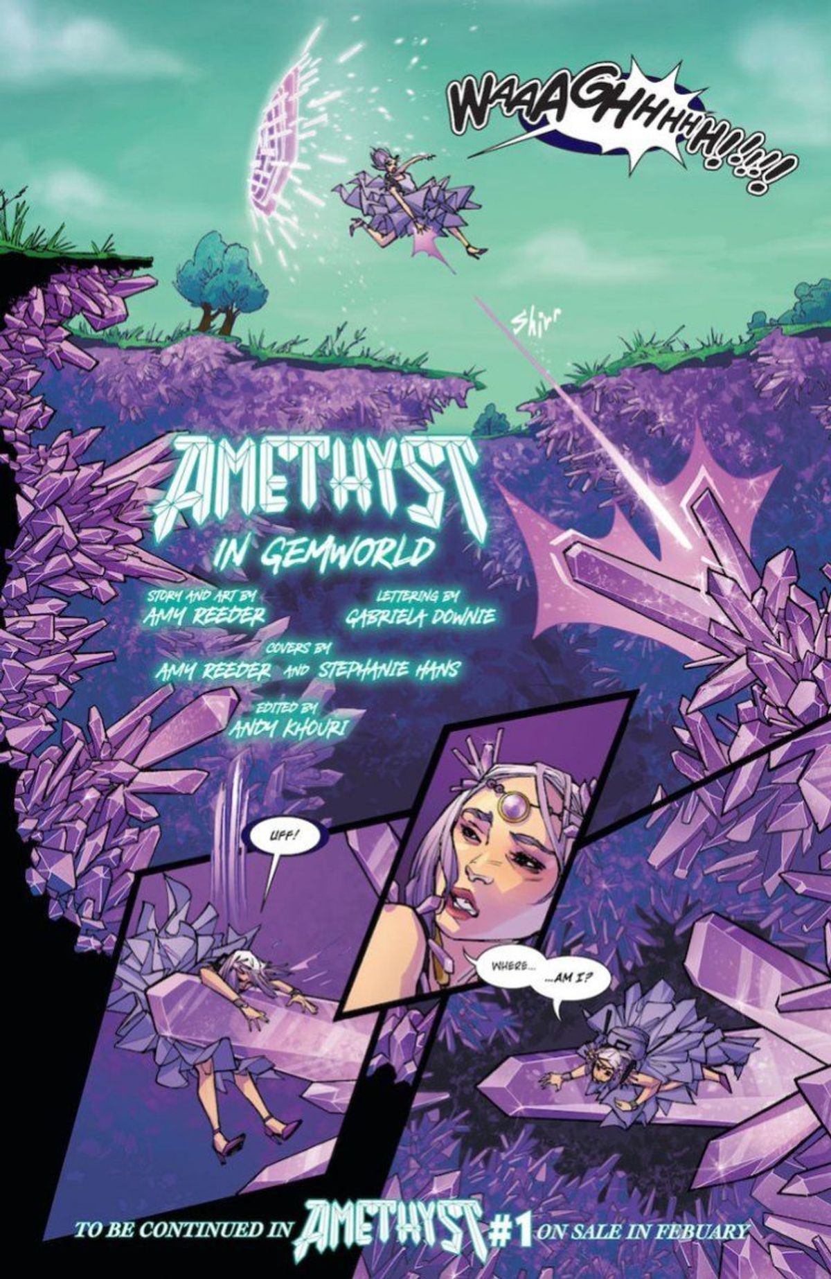 Dopo la reintroduzione del personaggio sulle pagine di Young Justice, come annunciato in occasione dello scorso New York Comic Con il prossimo 26 febbraio debutterà il progetto dedicato ad Amethyst, scritto e disegnato da Amy Reeder (Rocket Girl) per l’etichetta Wonder Comics della DC Comics.