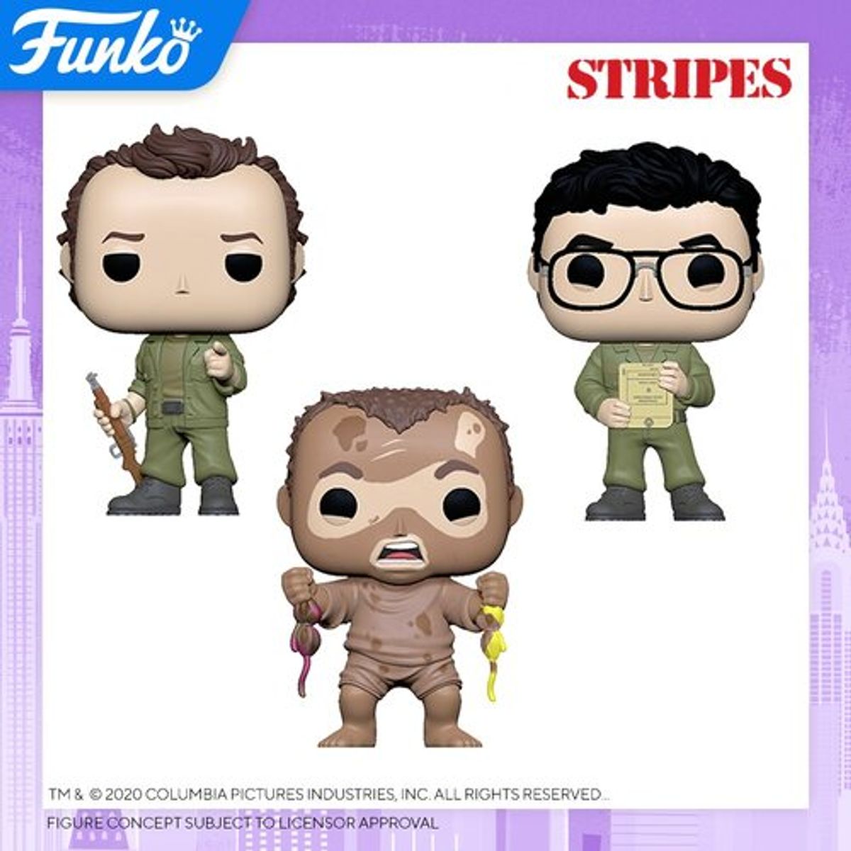 Le Figure di Animal House includono due versioni di John “Bluto” Blutarsky, personaggio iconico interpretato da John Belushi. Mentre quelle di Stripes mostrano Bill Murray nei panni di John Winger, Harold Ramis in quelli di Russell Ziskey e John Candy nei panni di Dewey “Ox” Oxberger