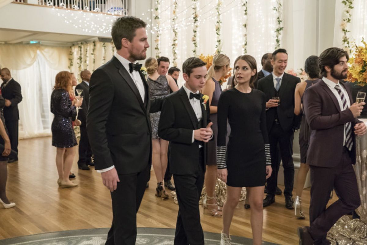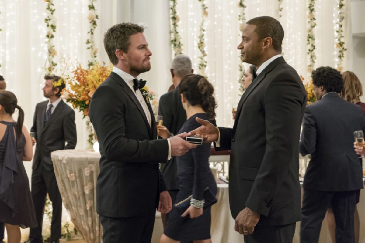 Al termine del crossover Crisis on Earth-X era inoltre stato mostrato il matrimonio tra Oliver e Felicity e le foto svelano i festeggiamenti per il lieto evento.