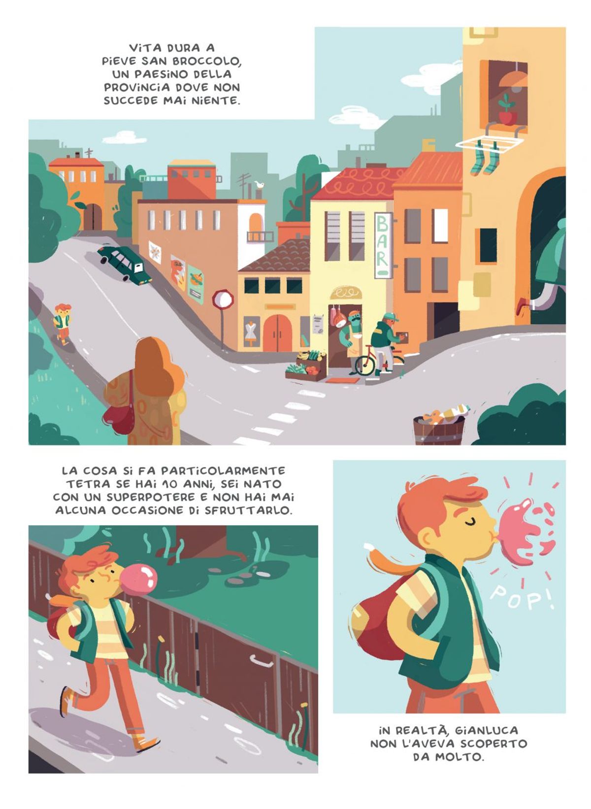 Non succede mai nulla di bello, a Pieve San Broccolo, fino al giorno in cui Gianluca scopre di avere il potere di dare alla gomma da masticare alla fragola la forma che più gli piace. Come in ogni storia di supereroi che si rispetti, si avvicendano fratelli scassinatori di gioiellerie, un'arcinemica munita di yoyo e un inseparabile migliore amico collezionista di insetti giganti.