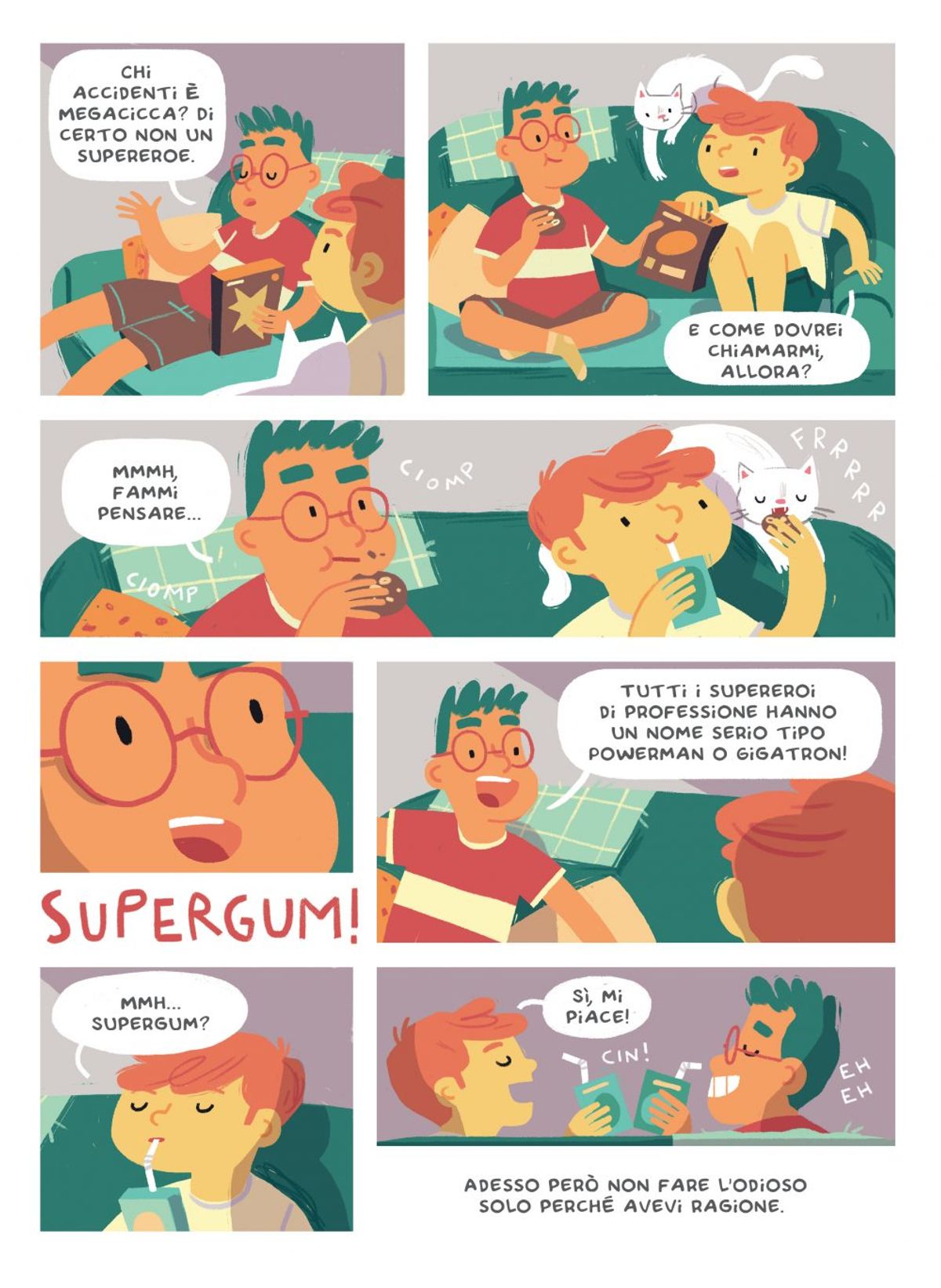 Nasce così Incantagomme, anzi Megacicca, anzi Supergum! Difensore degli... di chi, esattamente? Lo scoprirete leggendo questa storia, la prima di cinque avventure di Supergum, preparatevi a restare appiccicati alla poltrona!