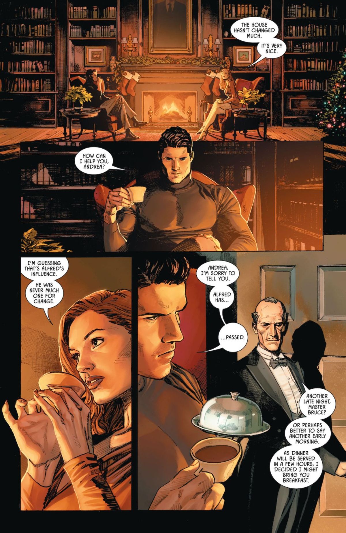 Come ormai dovreste sapere, sul numero #50 di Batman, abbiamo avuto modo di assistere al poco lieto epilogo del matrimonio tra i i due. Adesso, continueremo a seguire questa vicenda amorosa e capire cosa King avesse ancora in servo per loro. In questi mesi si sono susseguiti diversi annunci sui contenuti e i comprimari di questa storia; tra i vari, sappiamo che farà il suo esordio nell'Universo DC Fantasma, celebre villain del film animato Batman: La maschera del Fantasma, diretto da Eric Radomski e Bruce Timm nel 1993.A poche ore dal debutto della maxi-serie, la DC Comics ha diffuso in anteprima le prime tavole dell'albo. Scorrendole, non possiamo non notare la presenza di una scena di sesso tra Bruce e Selina, con il maggiordomo Alfred a fare da involontario osservatore. In passato, non sono di certo mai mancati momenti del genere ma la sottolineatura nasce per un Tweet - poi rimosso - dello stesso King che rispondeva a una domanda di un lettore curioso che voleva essere rassicurato su quest'aspetto.Di seguito trovate la sinossi del primo numero di Batman/Catwoman: