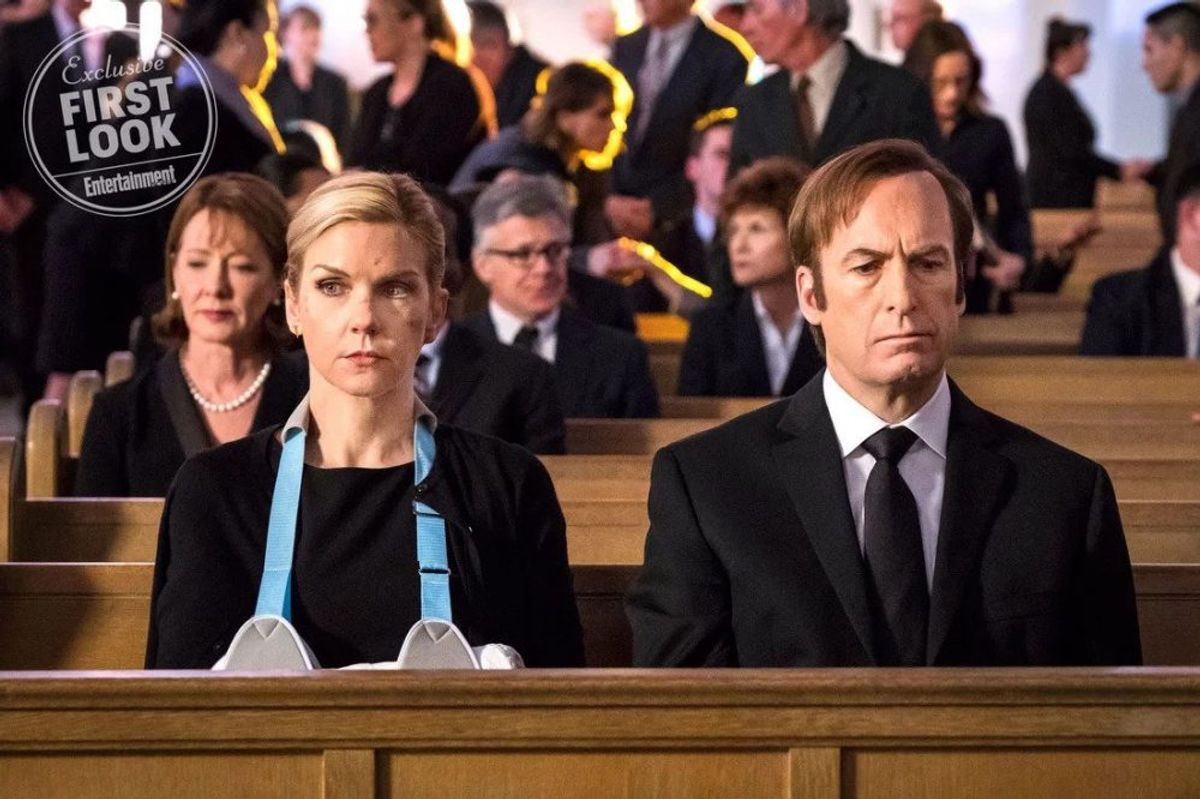 Il produttore, che ha co-creato Better Call Saul con Peter Gould, ha proseguito: “C’è un personaggio molto importante; non dico che l’abbiate già visto, ma c’era un personaggio molto importante a prescindere dall’era di Breaking Bad che incontreremo quest’anno. Sarete tutti colpiti profondamente da lui.”Nelle immagini diffuse possiamo vedere proprio Jimmy e Kim al funerale di Chuck. In altre immagini vediamo Gus Fring e Mike. Potete vedere le immagini di seguito: