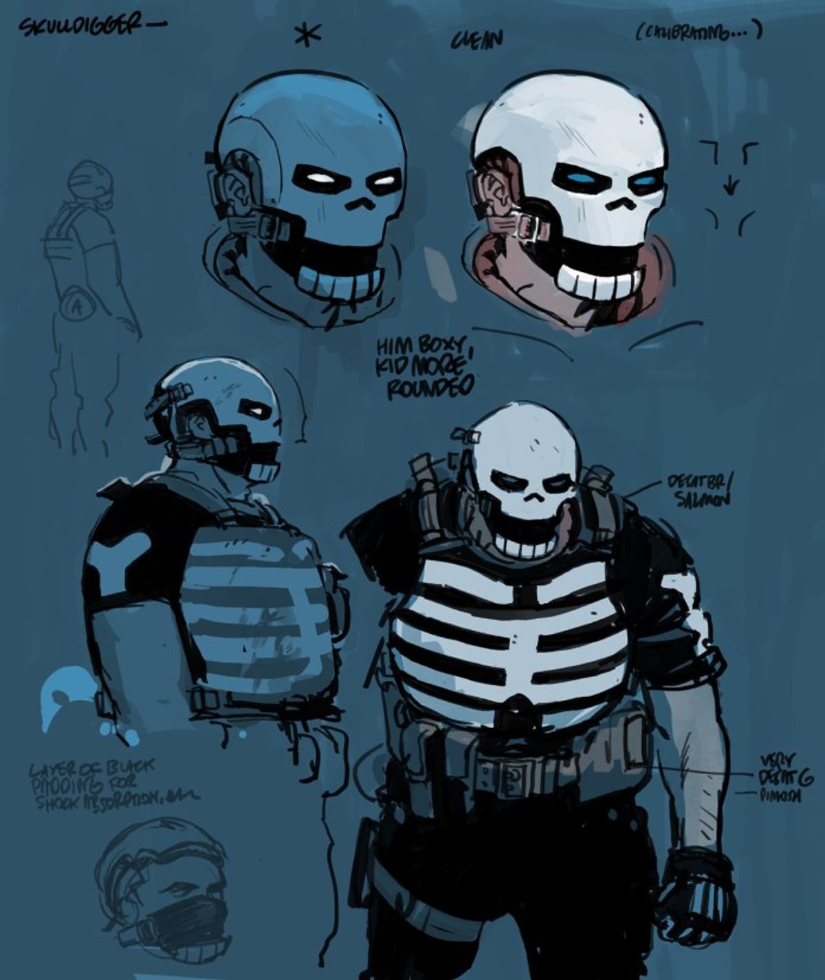 Zonjic - Il processo di design si è focalizzato perlopiù su Skulldigger e Skeleton Boy, mi sono preso qualche mese per fare delle prove e creare dei costumi memorabili, che in quel mondo avrebbero potuto essere realizzati da qualcuno che non ha le risorse di Bruce Wayne. Trovare una nuova forma per il teschio è stata un'impresa, perché quella classica viene utilizzata da qualcosa come 5.000 anni. Non posso dire di aver fatto un confronto con tutti i teschi mai realizzati nella Storia dell'Uomo, ma il loro aspetto mi sembra abbastanza divertente. E probabilmente potete rifarli a casa!