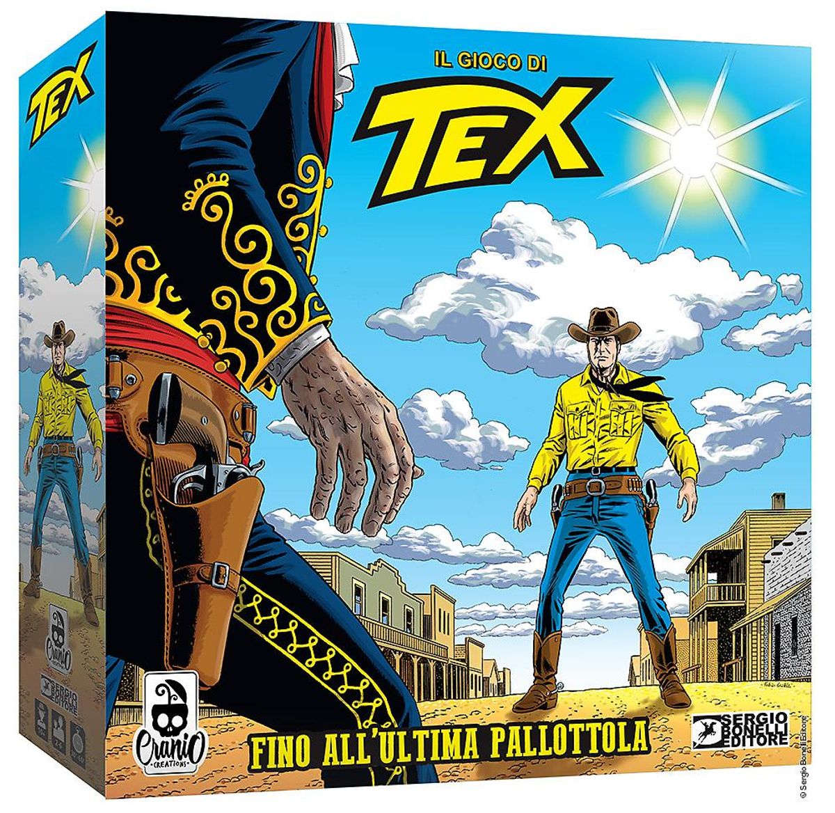 Continua la declinazione ludica dell'icona di Sergio Bonelli Editore. Se per il Monopoly si trattava di un adattamento del classico gioco da tavolo, nel caso di Fino all'ultima pallottola - Il gioco di Tex parliamo di un boardgame creato ad hoc e totalmente originale, niente a che vedere con quello uscito nel 1975; nato in collaborazione con la casa editrice milanese, è stato realizzato da Cranio Creations, azienda specializzata in ideazione, sviluppo, produzione e distribuzione di giochi in scatola.