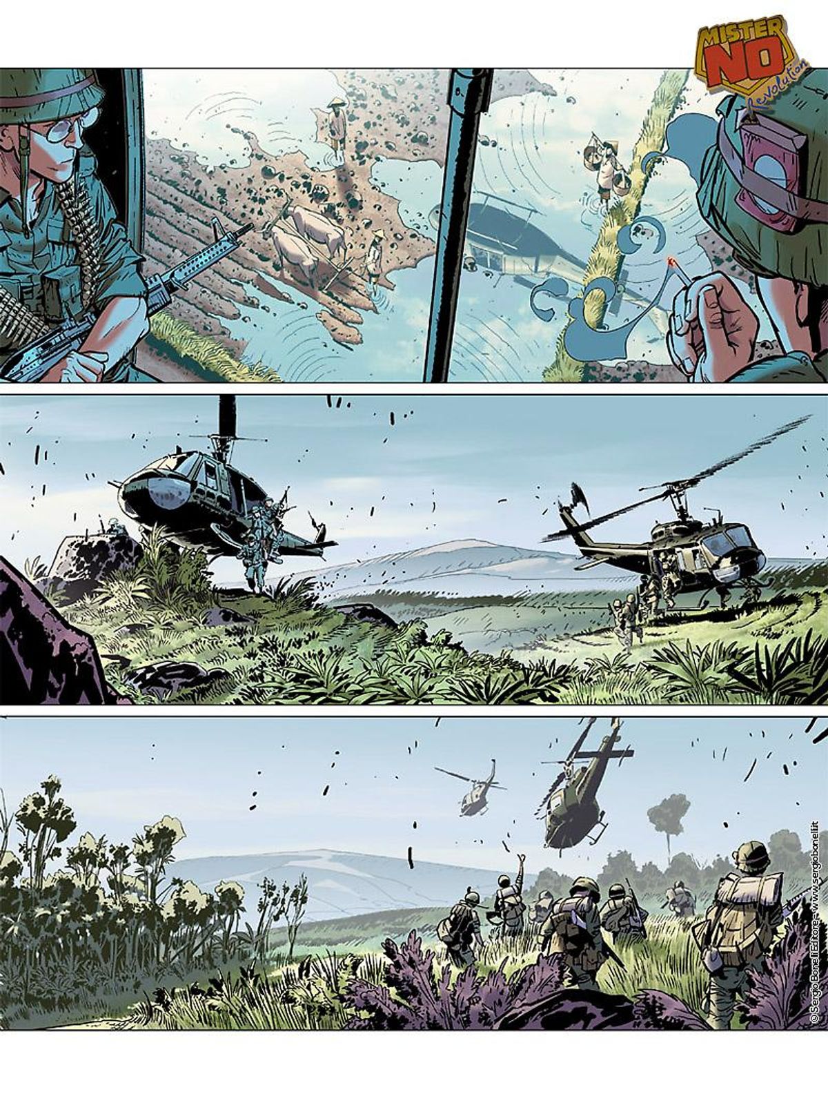Mister No Revolution racconta di una versione moderna, avanti venticinque anni nel futuro rispetto alla linea temporale classica. Jerry Drake non ha combattuto nella Seconda Guerra Mondiale, bensì in quella del Vietnam. Soldato nel Sud-est asiatico e poi reduce nella San Francisco di fine anni Sessanta, lo vedremo muoversi in un mondo completamente diverso da quello tradizionale, anche se gli avvenimenti lo porteranno in qualche modo nella sua amata Amazzonia.L'opera è stata concepita in tre capitoli, il primo dei quali arriverà in libreria e in fumetteria a novembre. In edicola la pubblicazione sarà invece articolata in sei albi, a partire da dicembre.