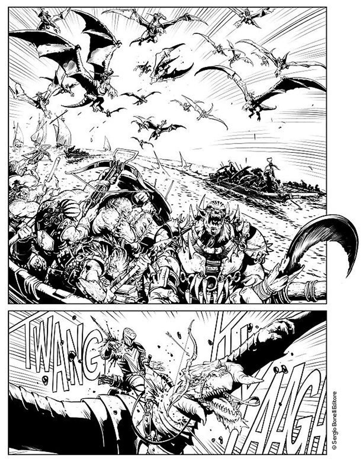 - La reazione dell'Impero Erondariano e dei suoi alleati alla micidiale minaccia elfica comincerà a prendere forma ad aprile e maggio, sui due albi disegnati rispettivamente da Antonella Platano e Fabio Babich.