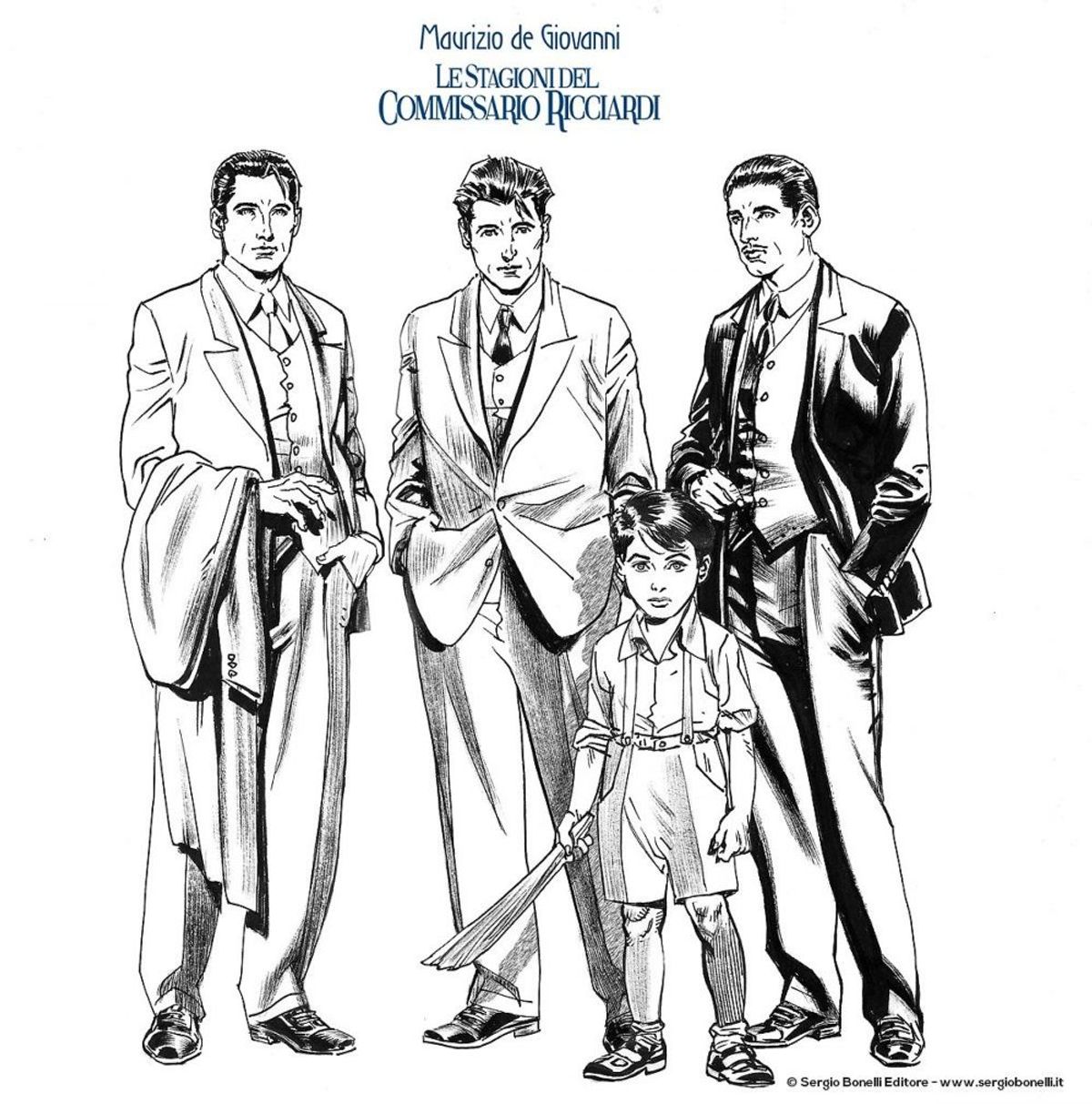 - Veniamo alle ormai consolidate iniziative dedicate al Commissario Ricciardi: a maggio uscirà il secondo Ricciardi Magazine, che ospiterà la trasposizione di cinque racconti di De Giovanni rielaborati in quattro storie: I vivi e i morti, sceneggiata da Sergio Brancato e disegnata da Daniele Bigliardo; Mammarella, di Claudio Falco e Luigi Siniscalchi; Quando si dice il destino, che incorpora anche l'episodio A volte, scritto sempre da Claudio Falco e illustrato da Lucilla Stellato; L'ultimo passo di tango, su testi di Paolo Terracciano e matite di Alessandro Nespolino. Il volume sarà inoltre arricchito da alcune tavole in bianco e nero tratte da I Bastardi di Pizzofalcone.- Conclusasi con Il giorno dei morti la tetralogia di Le stagioni del Commissario Ricciardi, in autunno arriverà la versione a fumetti del quinto libro della serie in prosa, intitolato Per mano mia, firmato da Claudio Falco e Daniele Bigliardo. Sono poi già in lavorazione i successivi Vipera, ad opera di Sergio Brancato e Lucilla Stellato, e In fondo al tuo cuore, su script di Paolo Terracciano e arte di Alessandro Nespolino.