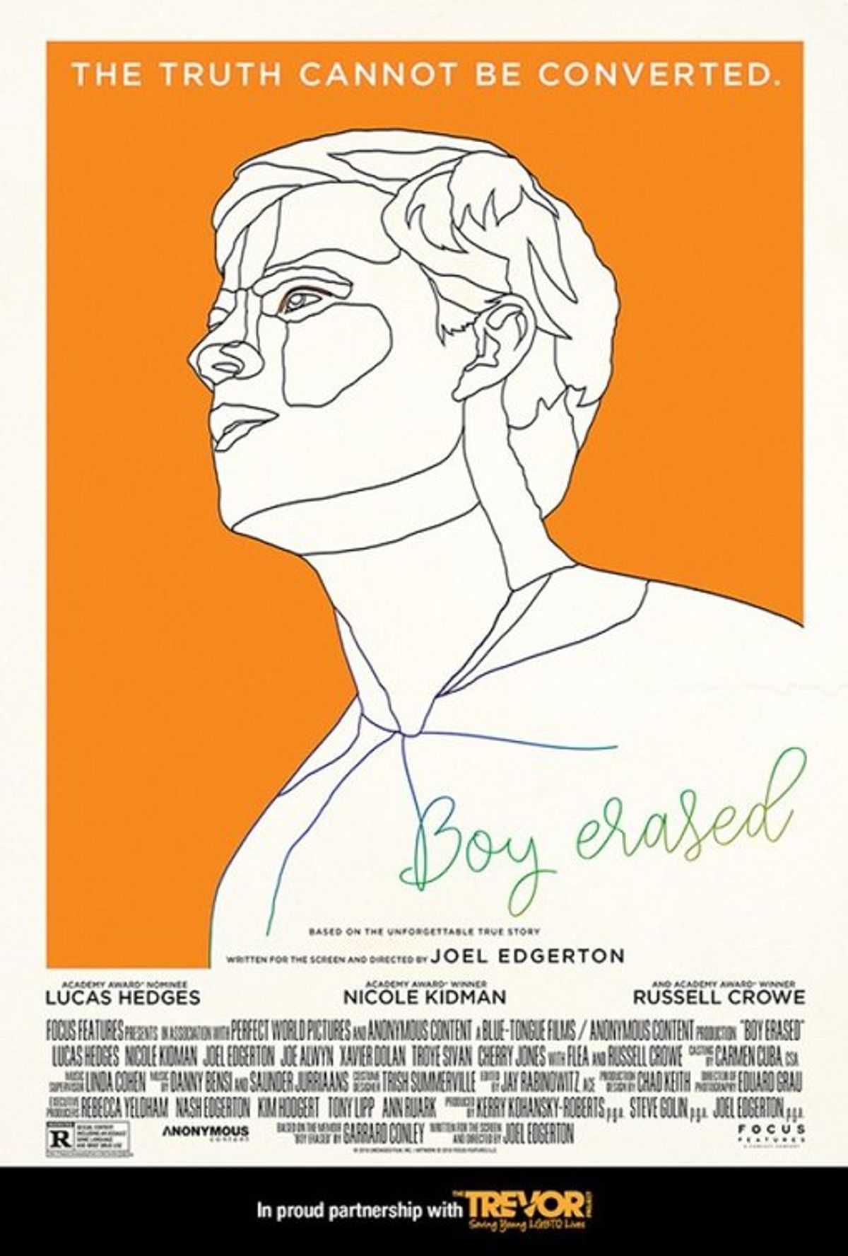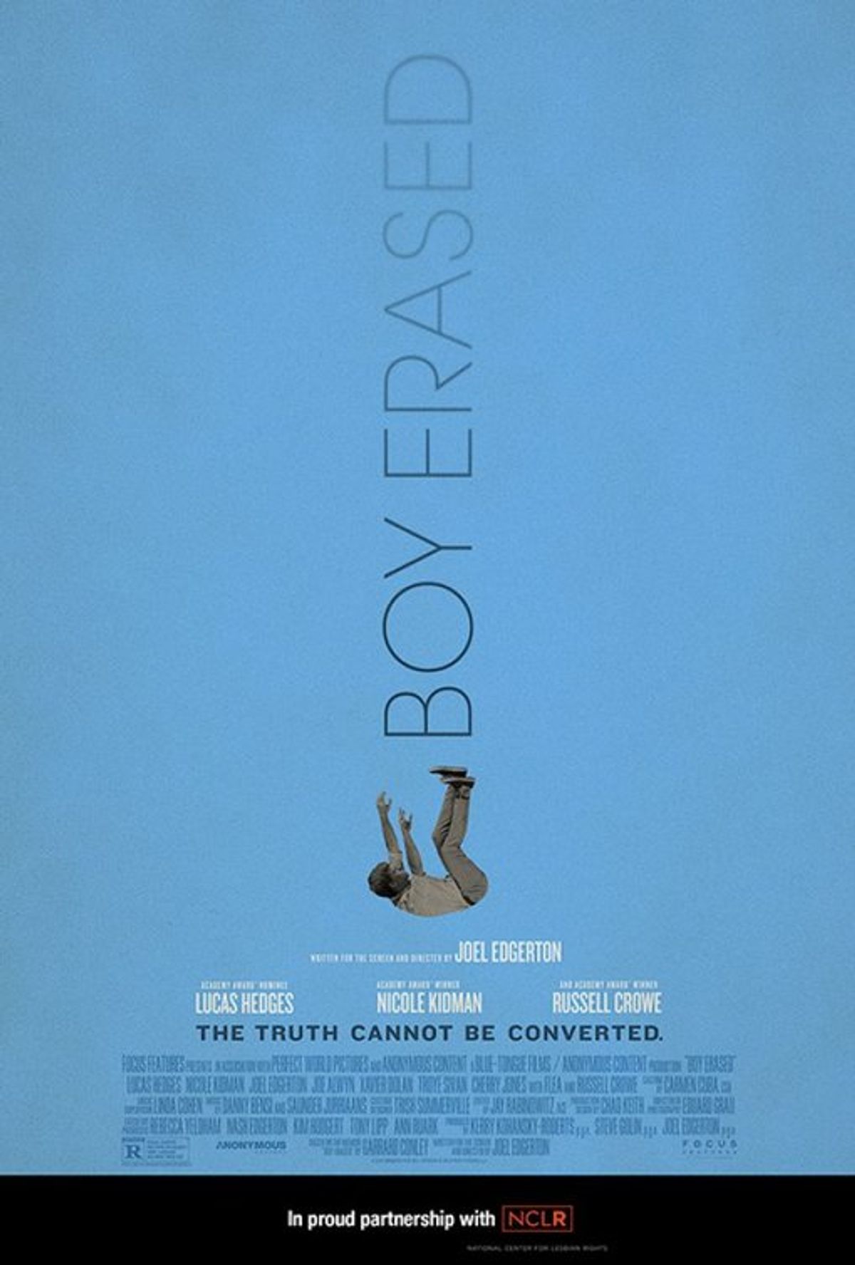 Tratto dall’autobiografia di Garrard Conley, il film segue la storia di Jared (Lucas Hedges), figlio di un pastore battista di una piccola città americana, a cui i genitori danno un ultimatum: o intraprendere una terapia ripartiva per ragazzi gay o essere esiliato dagli affetti, dalla famiglia, dagli amici e dalla fede.