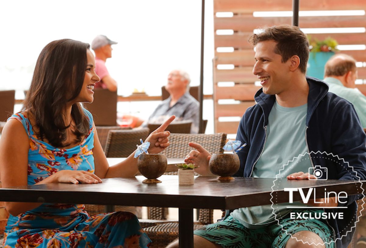 È TVLine a condividere in esclusiva le foto della season premiere che andrà in onda il 10 gennaio sulla NBC: il signore e la signora Peralta sembrano godersi del meritato relax dopo gli eventi della quinta stagione. Come ricorderete, il loro "toit nups" (che in italiano tradurremmo come "matrimonio fico") ha rischiato di essere annullato dopo che un allarme bomba li ha costretti a mettere fine alla loro cerimonia programmata. Fortunatamente, Charles era presente e ha salvato la giornata mettendo in piedi all'ultimo minuto un matrimonio all'aperto che è stato poi officiato dal capitano Holt.