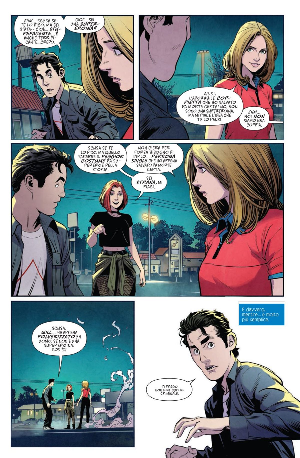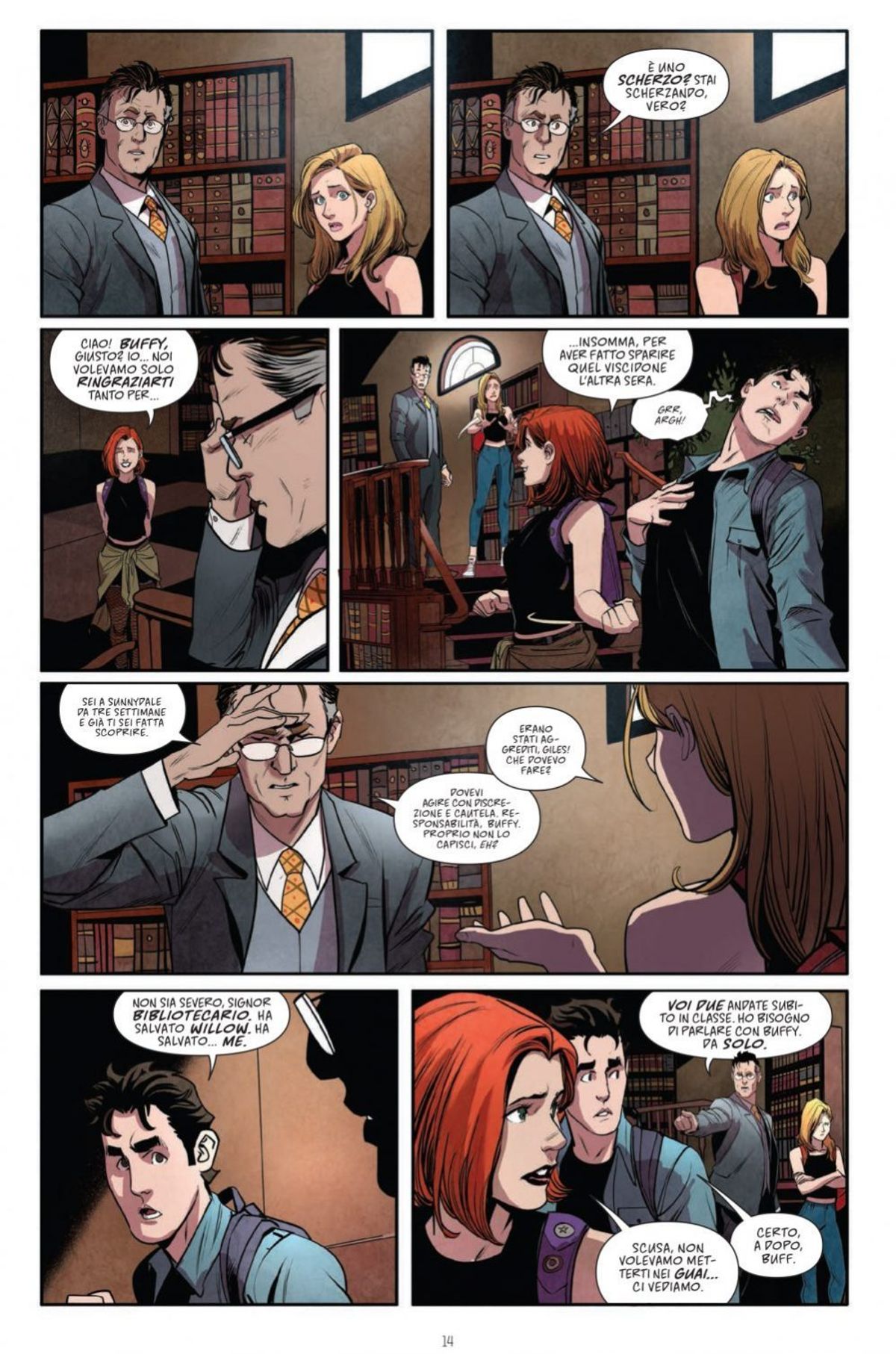 Scritta da Jordie Bellaire e disegnata da Dan Mora, Buffy the Vampire Slayer è un vero e proprio reboot del serial televisivo creato da Joss Whedon, in quanto rivisita le avventure al liceo dell'ammazzavampiri; sono infatti diversi i cambiamenti dal punto di vista dei comprimari e del contesto generale, a partire dall’ambientazione calata nel presente invece che negli anni Novanta.Di seguito trovate la sinossi del volume (16,8 x 25,6 cm, C, 128 pp., col., 19,90 Euro), la copertina di Matthew Taylor, le prime tredici pagine e il comunicato ufficiale della casa editrice emiliana: