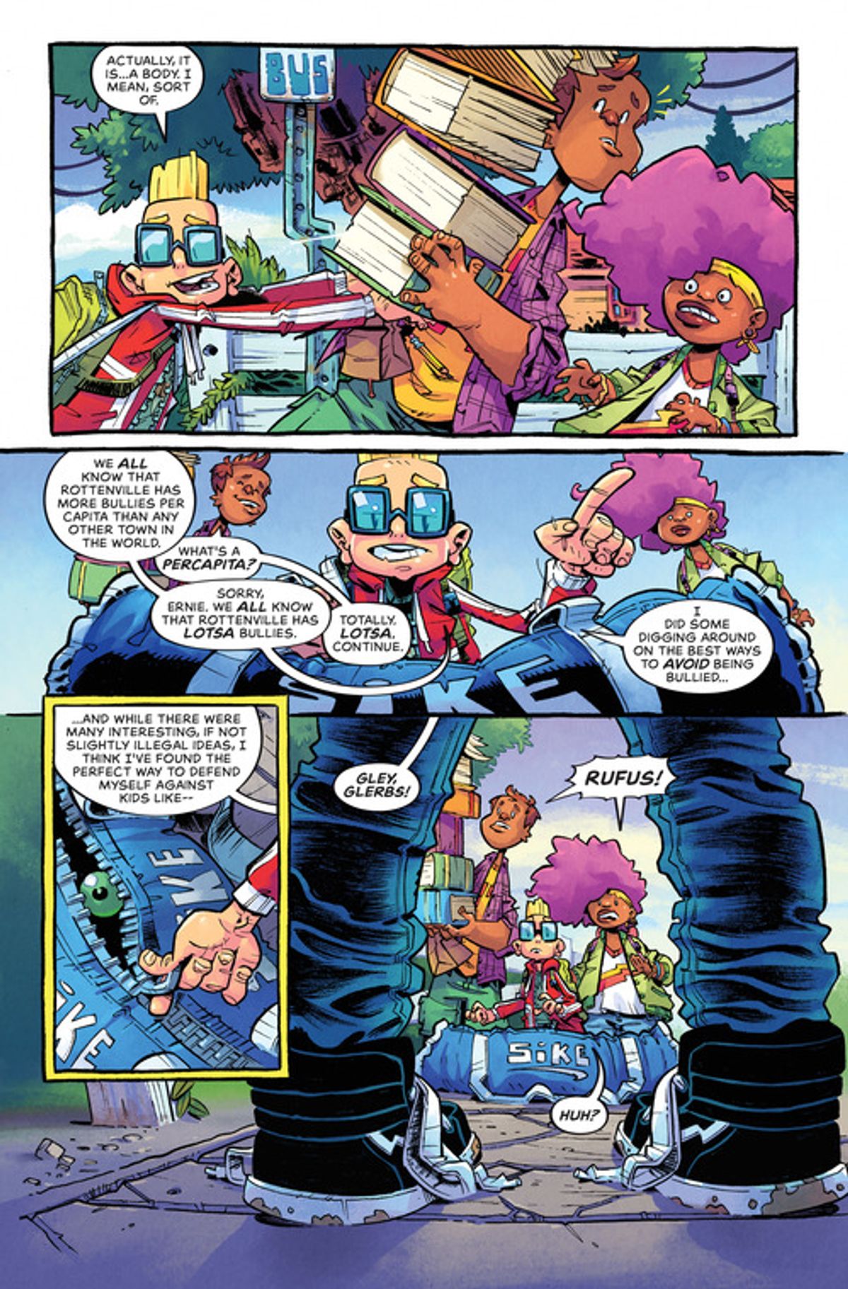 Qui sotto trovate la sinossi e alcune tavole del primo numero:Bully Wars è ambientata nella cittadina di Rottenville, dove il giovane Spencer inizia il liceo ritrovandosi a stringere una bizzarra alleanza con Rufus, il bullo che lo perseguita da tutta la vita, per aiutarlo a competere in una sfida con la quale sarà stabilito l'ordine gerarchico della loro nuova scuola. Rufus riuscirà a trionfare in questo chiassoso evento o andrà a far compagnia a Spencer sul gradino più basso?