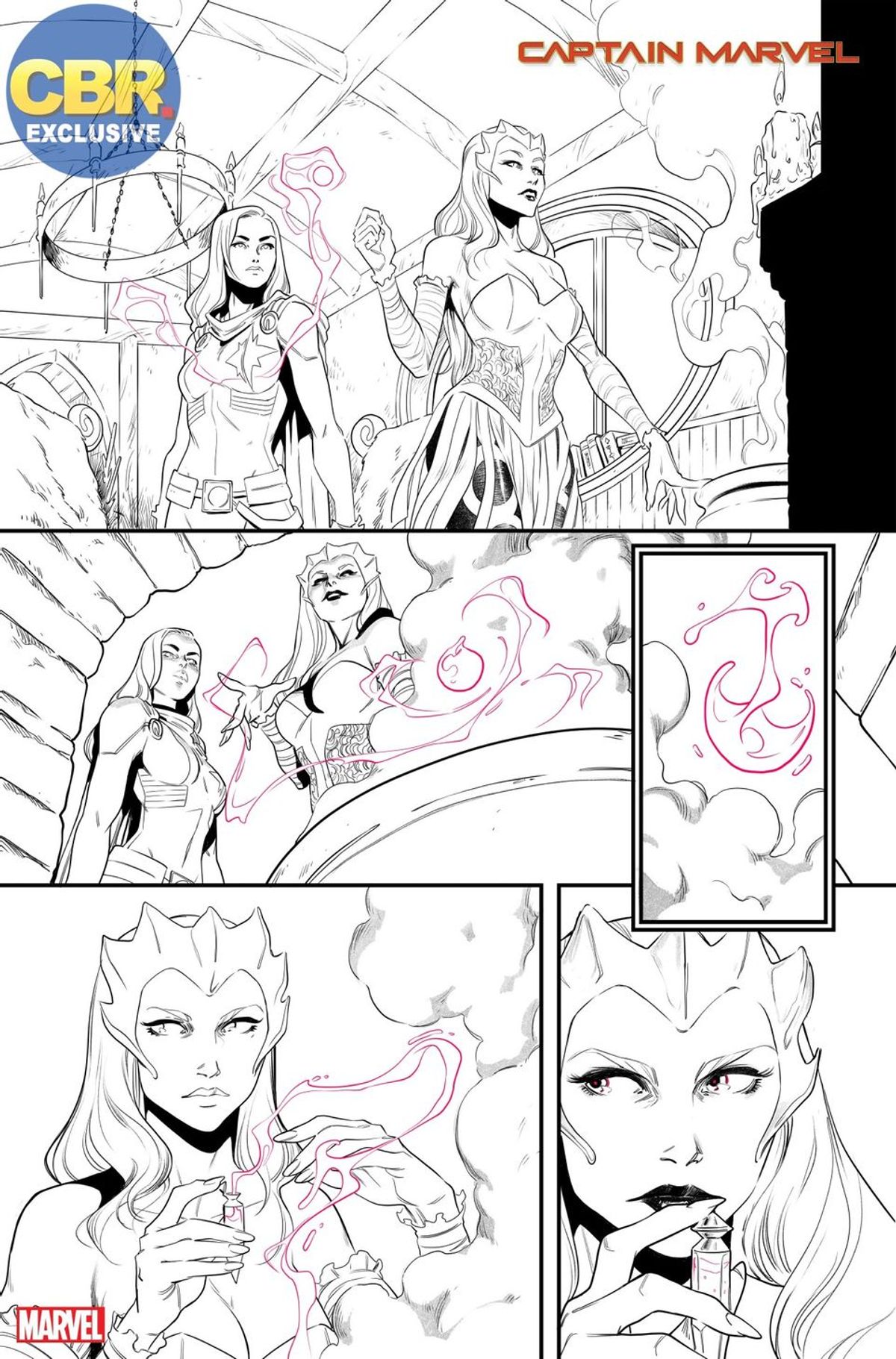 Il nuovo costume di Captain Marvel è stato progettato dallo spettacolare Marco Checchetto. Abbiamo iniziato con l'intenzione di dare a Carol un piccolo aggiornamento nel look, ma durante il lavoro ci siamo accorti di avere l'occasione per regalargliene uno specifico per questo arco narrativo a tema magico. Sono felice che l'abbiamo fatto per tempo, perché alla gente è piaciuto da matti, come a me.