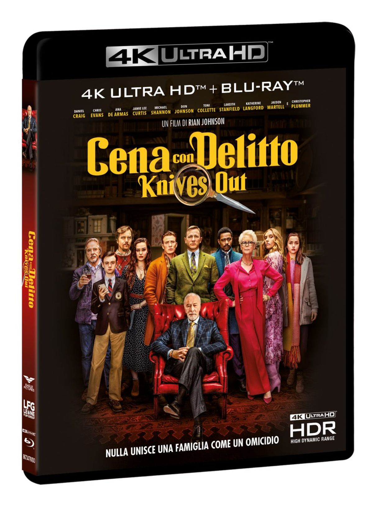 Dal 19 marzo arriva nei formati DVD, COMBO (con doppio disco Blu-ray +DVD) e nell’edizione 4K (contenente doppio disco Blu-ray 4k + Blu-ray HD ) l'irresistibile mystery comedy “Cena con delitto - Knives out”. Firmata dal regista Rian Johnson (“Star Wars- Gli ultimi Jedi”, “Looper - In fuga dal passato”), il film strizza l’occhio ai celebri gialli di Agatha Christie, offrendo al contempo un’interpretazione del genere originale e impreziosita da un cast stellare: da Daniel Craig (“Spectre”, Skyfall”, “Era mio padre”) a Chris Evans (“Avengers: Endgame”, “Captain America” la trilogia, “I Fantastici 4”), dal premio Oscar® Christopher Plummer (“Tutti i soldi del mondo”, “Beginners”, “The Last Station”) a Don Johnson (“Miami Vice”, “Django Unchained”, “Machete”) passando per Jamie Lee Curtis (“Halloween”, “True Lies”, “Una poltrone per due”). Il film ha ottenuto 3 nomination ai Golden Globe Awards 2020 ed è stato inserito dall'American Film Institute nella lista dei 10 migliori film dell’anno.