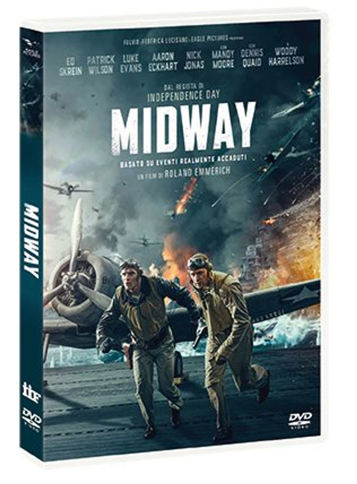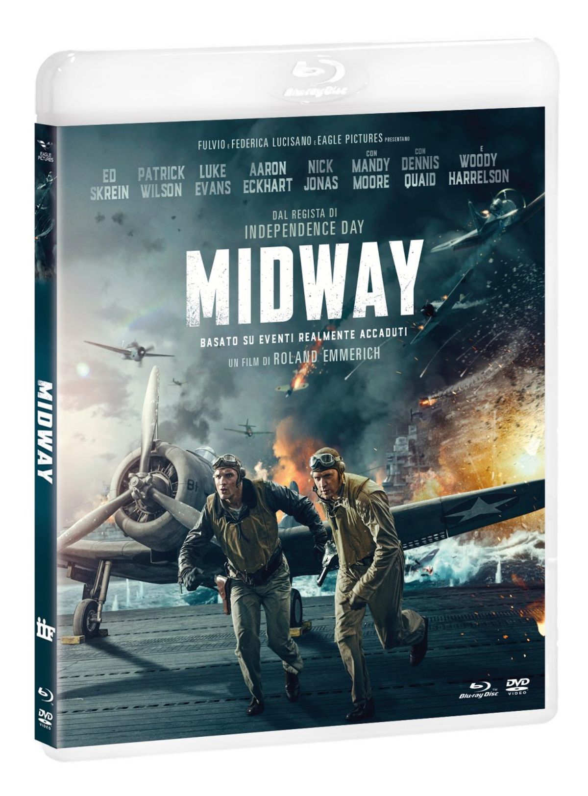 Per chi ama le emozioni, la grande storia e gli spettacolari effetti speciali, dal 25 marzo arriva in home video con Eagle Pictures anche “Midway”, war movie firmato dal regista cult del cinema catastrofico Roland Emmerich (“Independence Day” , “The Day After Tomorrow”, “Godzilla”). Il film è incentrato sulla battaglia delle isole Midway, punto di svolta cruciale della Seconda Guerra Mondiale, combattuta nel Pacifico tra giapponesi e americani tra il 4 e il 6 giugno 1942. La narrazione porta lo spettatore nel cuore della battaglia, resa ancora più intensa grazie ad un cast d’eccezione: Ed Skrein (“Deadpool”, “Alita - Angelo della battaglia”, “Se la strada potesse parlare”), Aaron Eckhart (“Il cavaliere oscuro”, “Thank You for Smoking”, “Attacco al potere”) Patrick Wilson (“L’uomo sul treno”, “L’evocazione”, “Annabelle 3”, “Acquaman”) e Luke Evans (“Fast & Furious 6”, “Dracula Untold”, “La bella e la bestia”, “Murder Mystery”). Il film è disponibile in DVD, nel doppio formato COMBO (Blu-ray +DVD) e in versione 4K (Blu-ray 4K + Blu-ray HD).