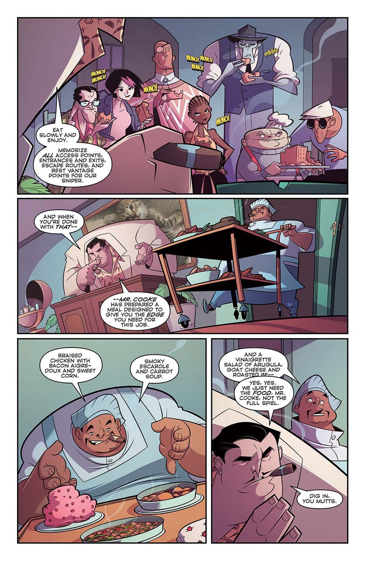 Nessuna collaborazione è uguale all'altra, lavorare con Rob [Guillory, artista di Chew - NdR] e Afu [Chan, disegnatore di Outer Darkness - NdR] è differente. Con Rob, si lavora maggiormente in una zona di comfort. Lo abbiamo già fatto assieme per molto tempo, è qualcosa a cui ti abitui e che ti manca quando è finito. Perciò è stato bello vedere nuove tavole da lui firmate e sentire l'atmosfera familiare che si crea quando "la banda si è riunita" e fa una jam session, perché è una bella sensazione.