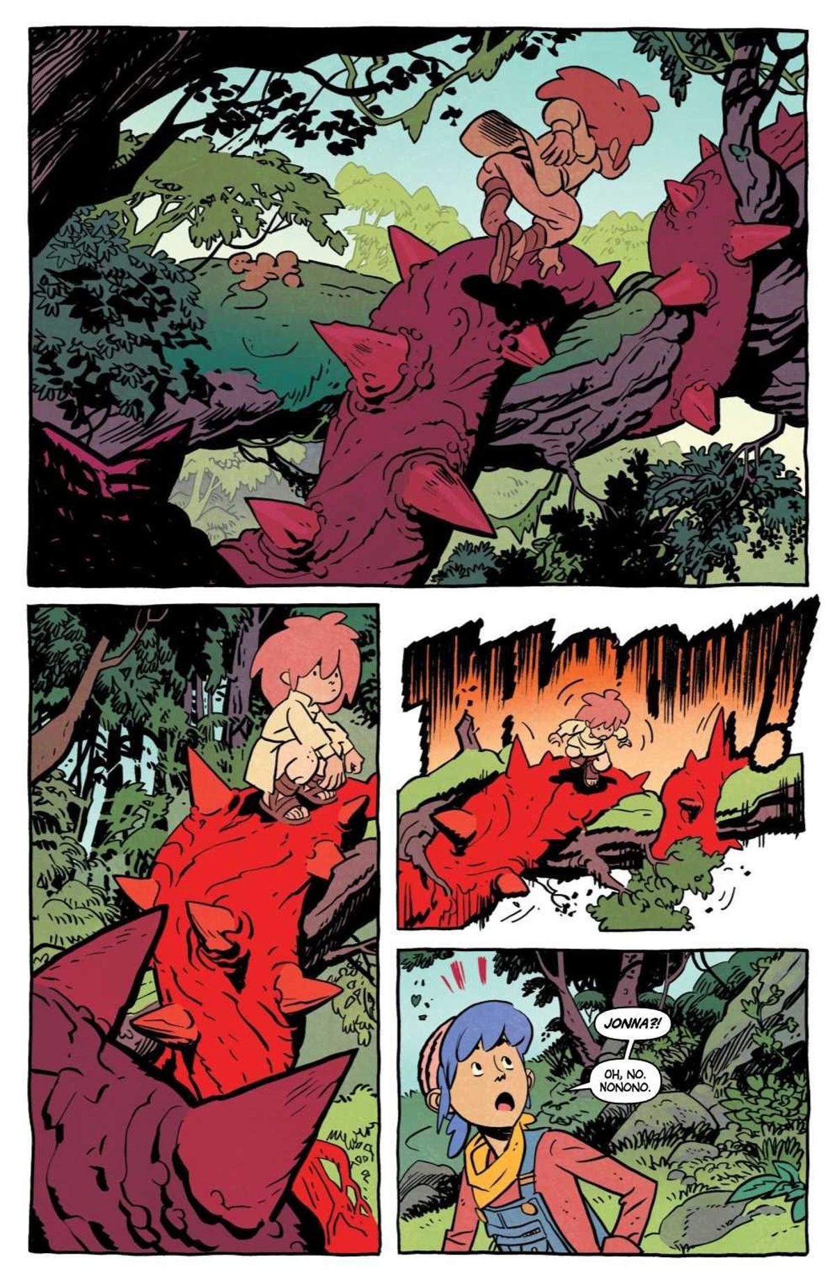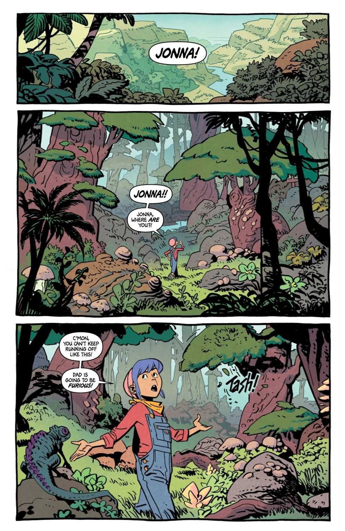 Il primo numero si apre con l'introduzione a questa specie di pianeta Terra idilliaco, pieno di vita e di persone assolutamente impreparate alla comparsa che vi faranno i mostri. Una volta che questi ultimi saranno sulla scena, il mondo attorno a Rainbow e Jonna cambierà in un luogo deserto e pericoloso, in cui sopravvivere se vogliono trovare il loro papà.Laura Samnee - Abbiamo tre figlie di età molto ravvicinate, quindi abbiamo preso spunto da loro per la relazione tra Jonna e Rainbow. Siamo fortunati perché le nostre ragazze sono davvero migliori amiche tra loro e si supportano moltissimo, quindi abbiamo voluto ricreare quel legame affettivo sulle pagine. Rainbow e Jonna si danno spesso sui nervi a vicenda, ma sono sempre lì l'una per l'altra. Fratelli e sorelle sono spesso tratteggiati con un certo antagonismo e noi volevamo invece rappresentare nella storia il bene che si vogliono le nostre figlie.