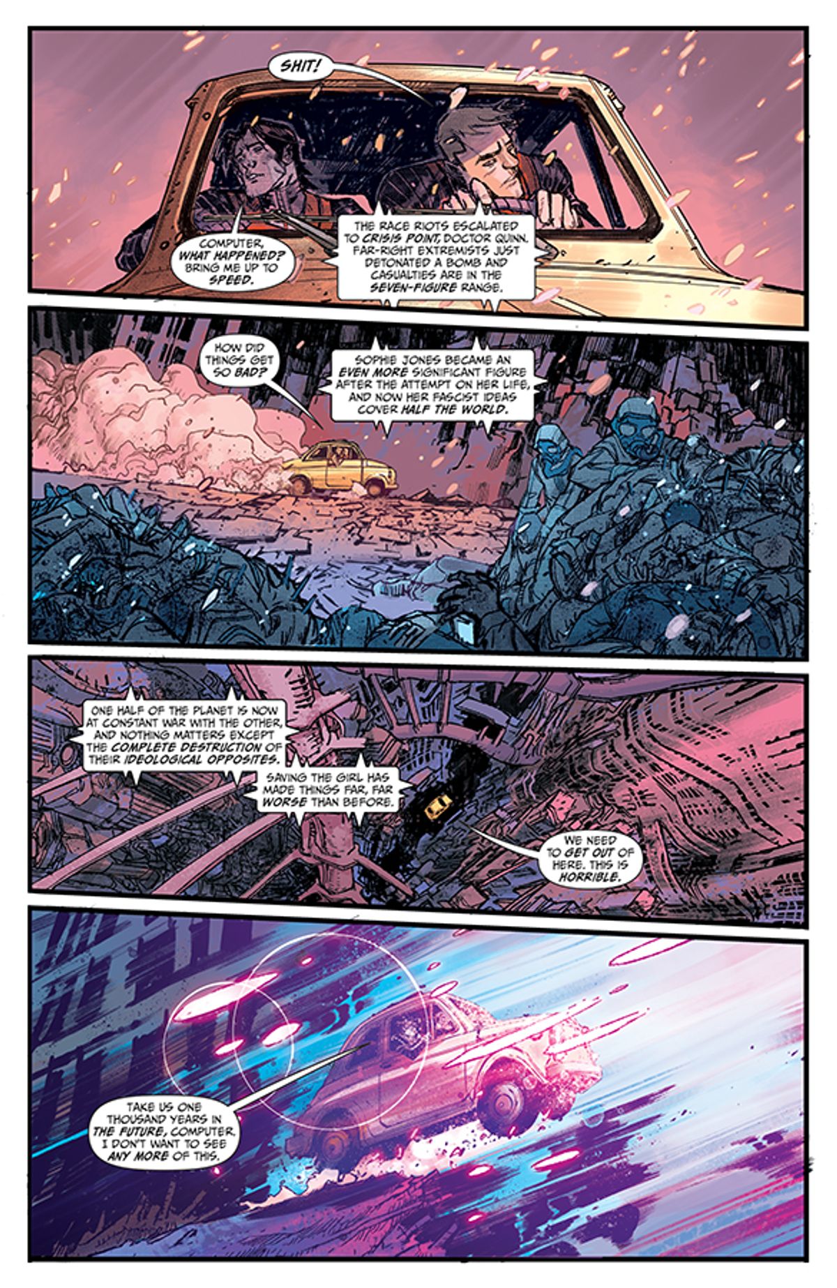 A tal proposito è stata diffusa una corposa anteprima di Chrononauts: Futureshock, dato che contempla tutti i capitoli della storia, la quale sarà sempre scritta dallo sceneggiatore scozzese ma disegnata da Eric Canete - in sostituzione dell'occupatissimo Murphy - con copertine di Pasqual Ferry. Dopo la sinossi trovate tredici pagine tratte dai vari episodi e alcune delle cover annunciate.Vi ricordiamo che la prima miniserie è stata pubblicata nel 2015 e raccolta in volume per l’Italia da Panini Comics nel settembre 2016. La storia racconta di Corbin Quinn e Danny Reilly, due amici scienziati che apprendono i segreti del viaggio nel tempo.