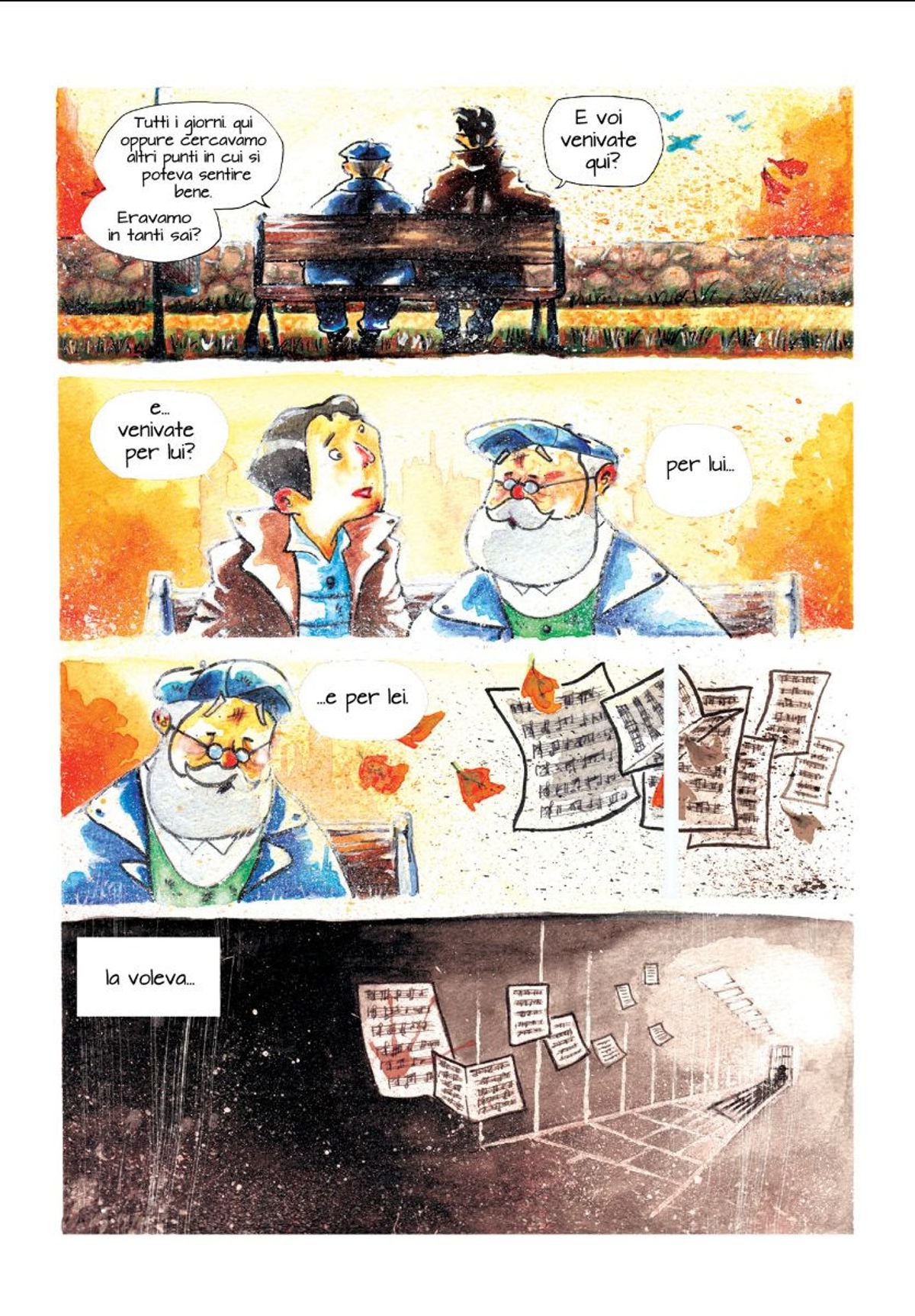 “Questa storia su Chet Baker non è una biografia né vuole esserlo, tutto sommato,” spiega Marco Di Grazia. “E' una narrazione, come narrazione lo è la musica in sé, con le sue note, con le sue melodie, con le sue armonie. Noi abbiamo usato parole e disegni, in una sorta di ideale spartito per raccontare i tormenti di un grande artista quale è stato Chet, i suoi demoni, le sue insicurezze, le sue sconfitte, la "sua" musica, la sua tromba, il suo genio... in quel periodo limitato, in quei pochi mesi passati fra Lucca e la Versilia e quella sua dipendenza che assume, nella storia, il volto e le sembianze di una bellissima donna in blu. E, come accade in questi casi, raccontando, si è diventati un po' più intimi. Con la sua musica e dentro la sua musica.”