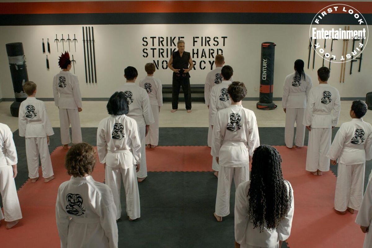 Il primo scatto mostra insieme Johnny Lawrence (William Zabka), John Kreese (Martin Kove), e Daniel LaRusso (Ralph Macchio).