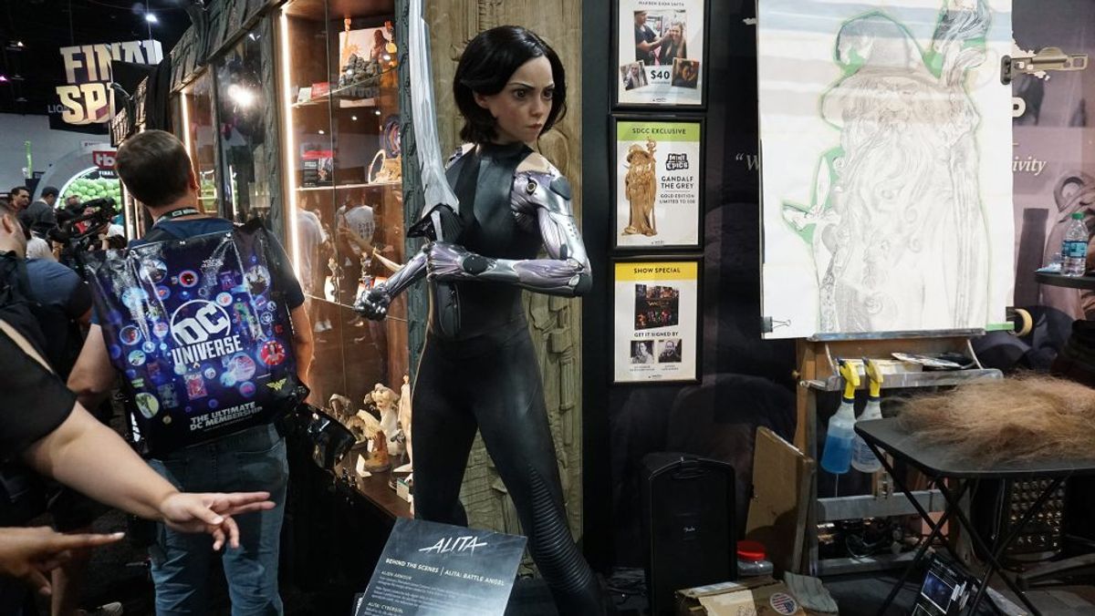 Come da tradizione, lo stand del Weta Workshop (studio di produzione di effetti speciali neozelandese fondato da Peter Jackson e Richard Taylor) è uno dei più ricchi al Comic-Con di San Diego. Nel nostro tour del piano principale della convention durante la Preview Night abbiamo scattato diverse immagini dello stand, al centro del quale ci sono due statue a grandezza reale di Alita, protagonista di Alita - Angelo della Battaglia, il nuovo film di Robert Rodriguez prodotto da James Cameron le cui prime immagini verranno mostrate in questi giorni qui a San Diego.