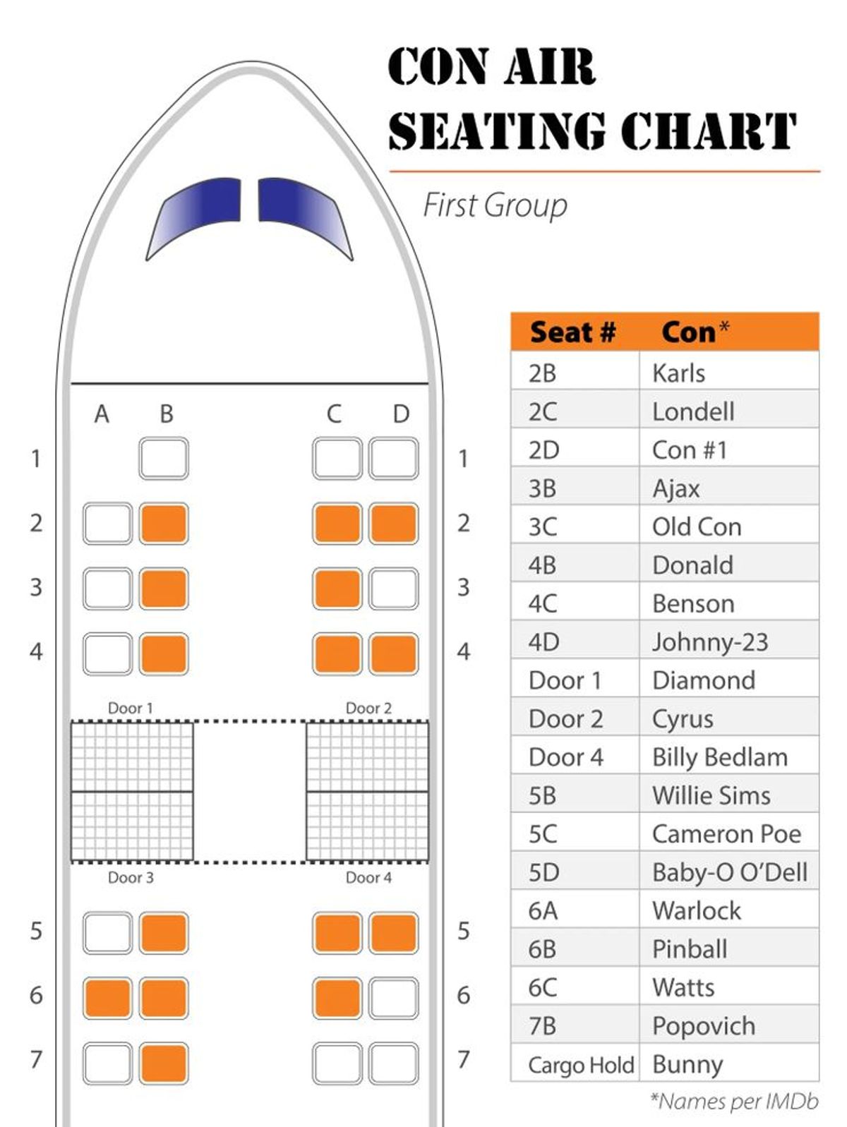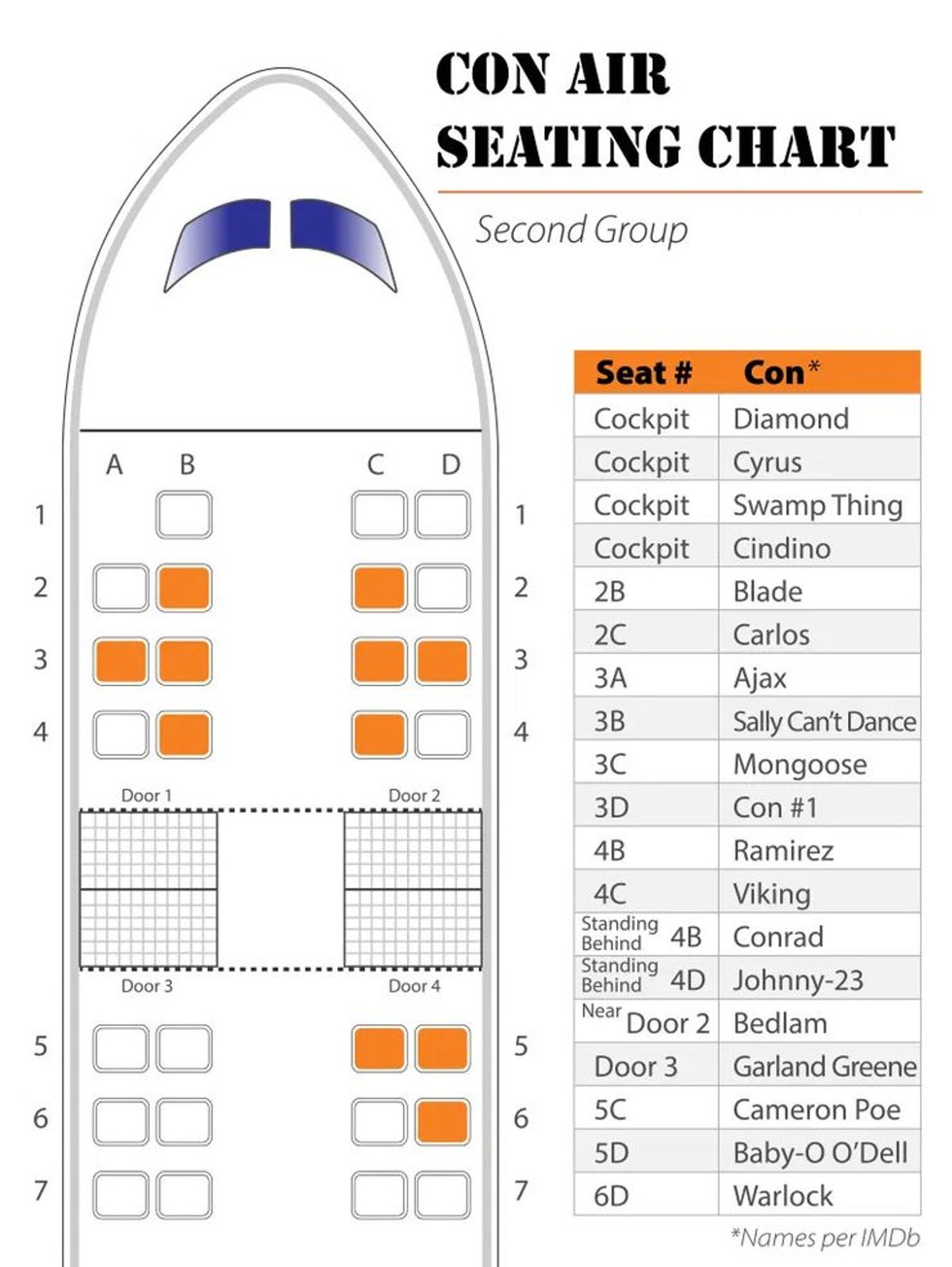 Con Air: un fan ha realizzato le piantine dell'aereo con tutti i posti assegnati ai detenuti visti nel film