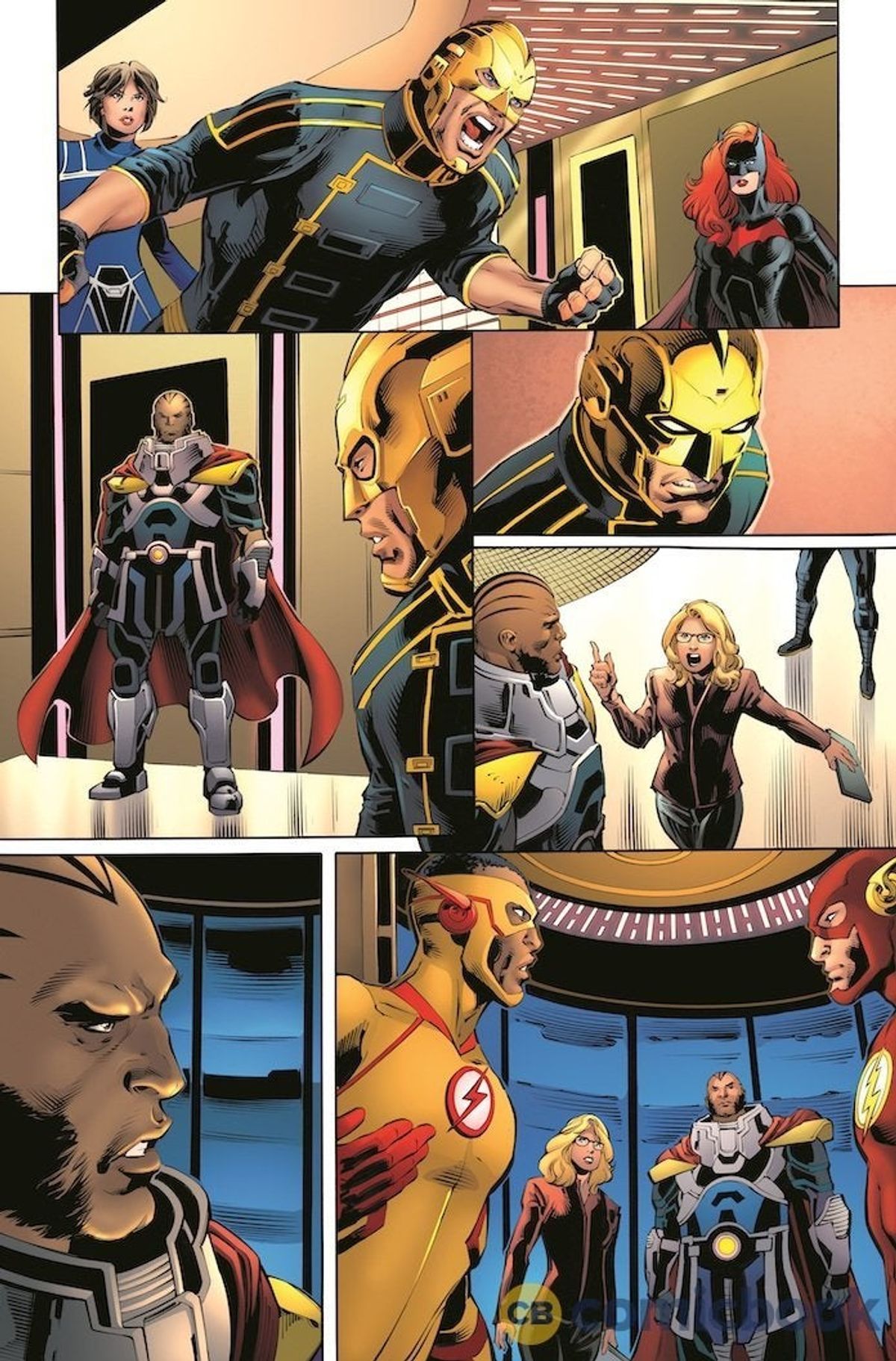 Tra le pagine sono presenti personaggi come The Ray, Kid Flash e Felicity Smoak, che non appaiono invece in Crisi Sulle Terre Infinite.