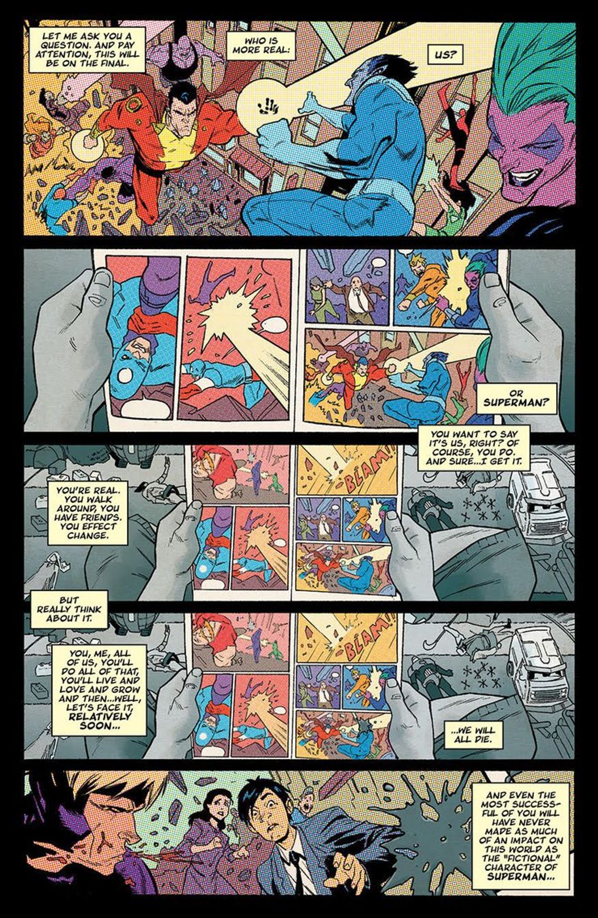 Un progetto potentemente metanarrativo, a quanto pare, e dalla natura stilistica varia e complessa. Sarebbero bastati i nomi che compongono il team creativo a creare entusiasmo, figuriamoci questi dettagli ancora da chiarire. Non vediamo l'ora di potervi dire di più e lo faremo non appena ne avremo occasione. Crossover #1 dovrebbe debuttare a novembre 2020.E se un evento a fumetti estivo generasse così tanta energia, rompesse così tante barriere e creasse tante e tali aspettative che la loro massa critica fosse in grado di aprire un portale verso il nostro mondo? Immaginate cosa succederebbe se tutto quel che avete sempre creduto fantasia... diventasse realtà. Unitevi a noi in un viaggio epico in un mondo in cui la realtà è morta... e tutto è possibile...
