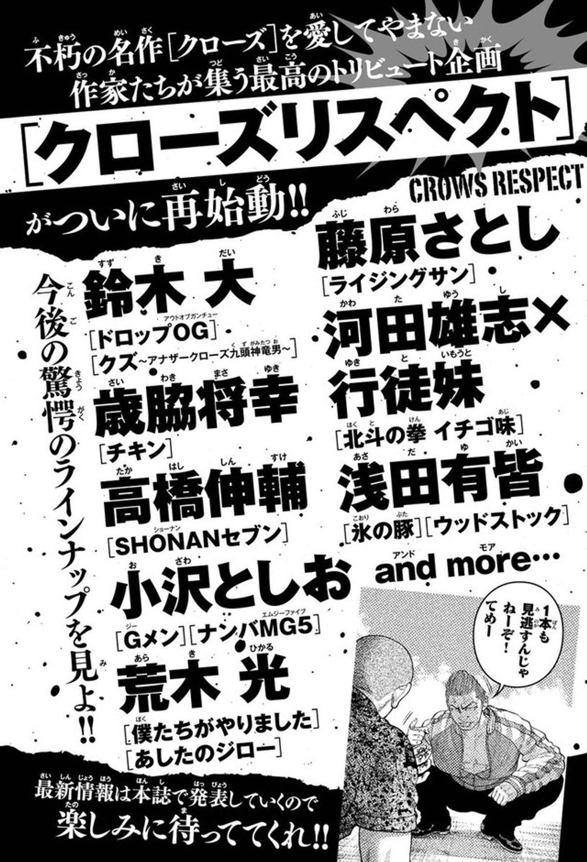 Crows Respect è il tributo al manga di Hiroshi Takahashi e coinvolge numerosi mangaka di Akita Shoten