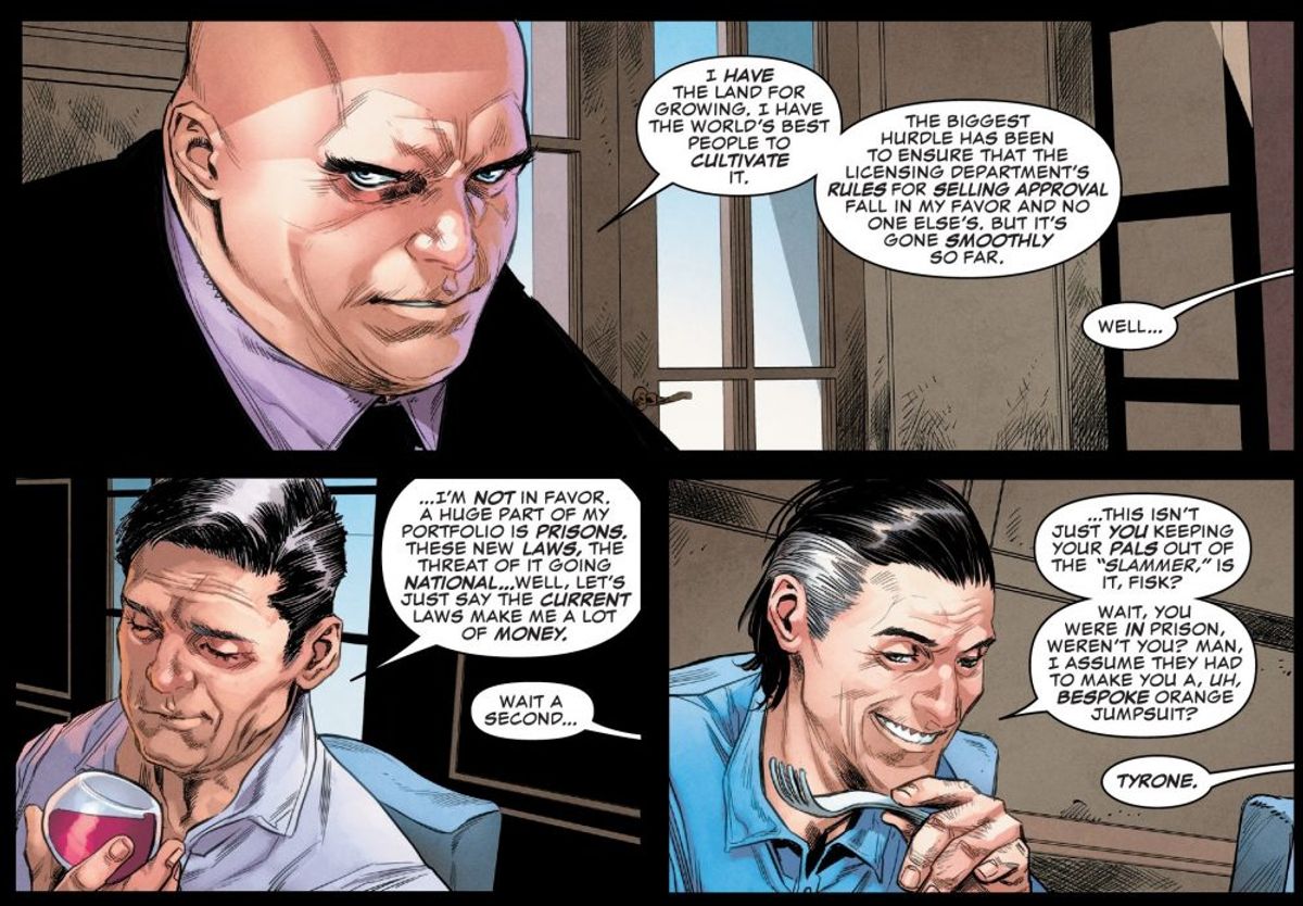 Nel numero #12 della serie dedicata a Daredevil, WIlson Fisk ha dichiarato di voler legalizzare la marijuana... ma non si tratta di una svolta liberal