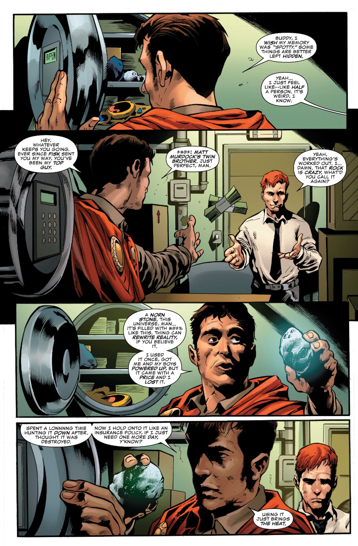 Nel presentarvi l’anteprima dello speciale, avevamo evidenziato come il titolo - la scritta “One More Day”, ossia “Soltanto un altro giorno”, con la “D” che ricalca il logo del Cornetto - evocasse ricordi non troppo felici ai fan di Spider-Man: in tanti, infatti, hanno subito pensato al controverso crossover del 2007 di J.M. Straczynski e Joe Quesada, in cui il matrimonio tra Peter Parker e Mary Jane venne cancellato da uno scellerato patto con Mefisto. Come successo per il Tessiragnatele, anche il Cornetto è stato oggetto di una rivoluzione che ne cambierà la vita per sempre.Sulle pagine dello speciale, Mike Murdock, l‘alter ego immaginario di Matt Murdock creato per sviare i sospetti sulla vera identità di Daredevil, è entrato a far parte della sua vita, modificandola in maniera radicale. Il personaggio è apparso recentemente sulle pagine del numero #606, durante la run di Charles Soule (Star Wars: Poe Dameron) e Phil Noto (Black Widow). In quell’arco narrativo, abbiamo scoperto che l’Inumano Reader (capace di materializzare le parole lette utilizzando la semplice forza di volontà) ha reso reali gli appunti di Matt in cui - appunto – si parlava del gemello immaginario.Nell’ultima apparizione di Mike, l’abbiamo visto entrare a far parte dell’organizzazione criminale di Hood, raccomandato da Wilson Fisk. Giungiamo, infine, a Daredevil Annual #1, dove il gemello di Matt scopre che Parker Robbins è in possesso di una Pietra Norn, in grado di alterare la realtà. Dopo averla rubata, Mike avvia un rituale che di fatto l’ha inserito nella storia dell’Universo Marvel.