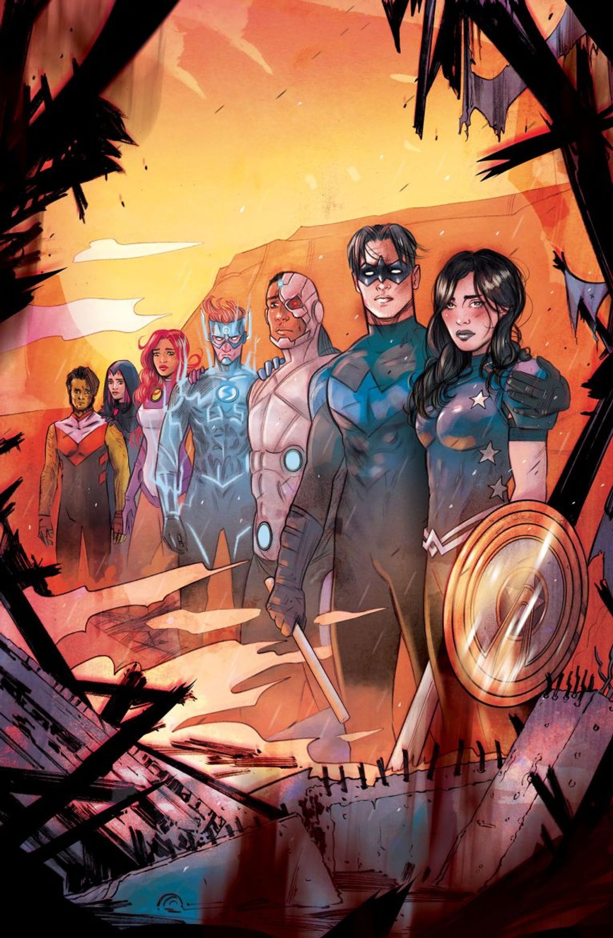 In mezzo a tante novità, dobbiamo riportare anche una chiusura: si tratta di Batman Beyond, serie scritta da Dan Jurgens per i disegni di Sean Chen. Il cinquantesimo numero della testata sarà disponibile con una copertina di Dan Mora (che potete trovare qua sotto) e una variant di Francis Manapul.
