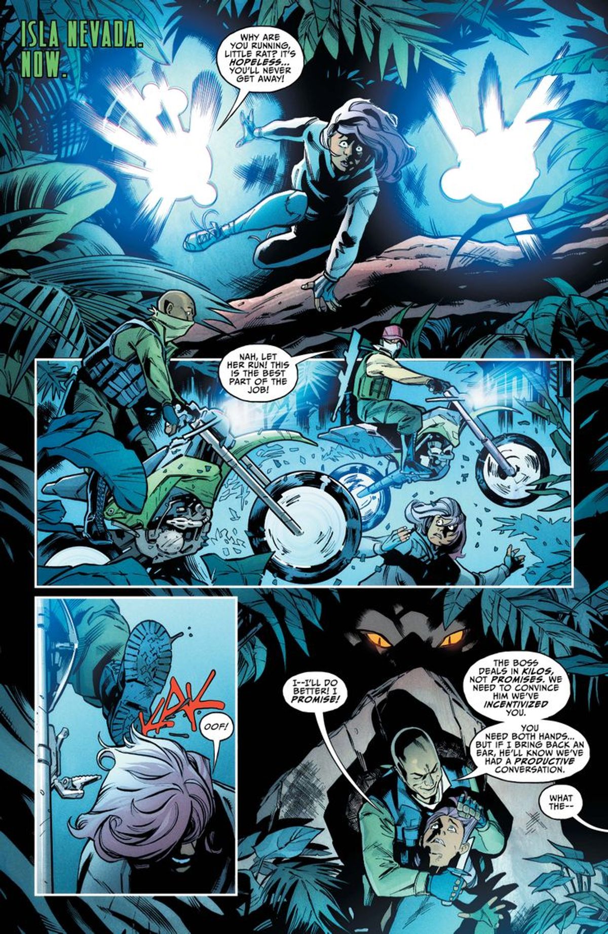 Northcott - Questo è decisamente un ritorno in piena forma, per Selina, in più di un senso. Sean aveva in testa delle idee visive spettacolari per il suo costume classico, con un tocco di moderno e qualche occhiolino a quello della serie animata di Batman degli anni Novanta. Nonché per l'ambientazione della storia. Sean ha pensato a un'avventura nella giungla davvero brillante. Non appena le idee generali sono state definite, sono tornato a ripercorrere e studiare le radici del personaggio di Catwoman.