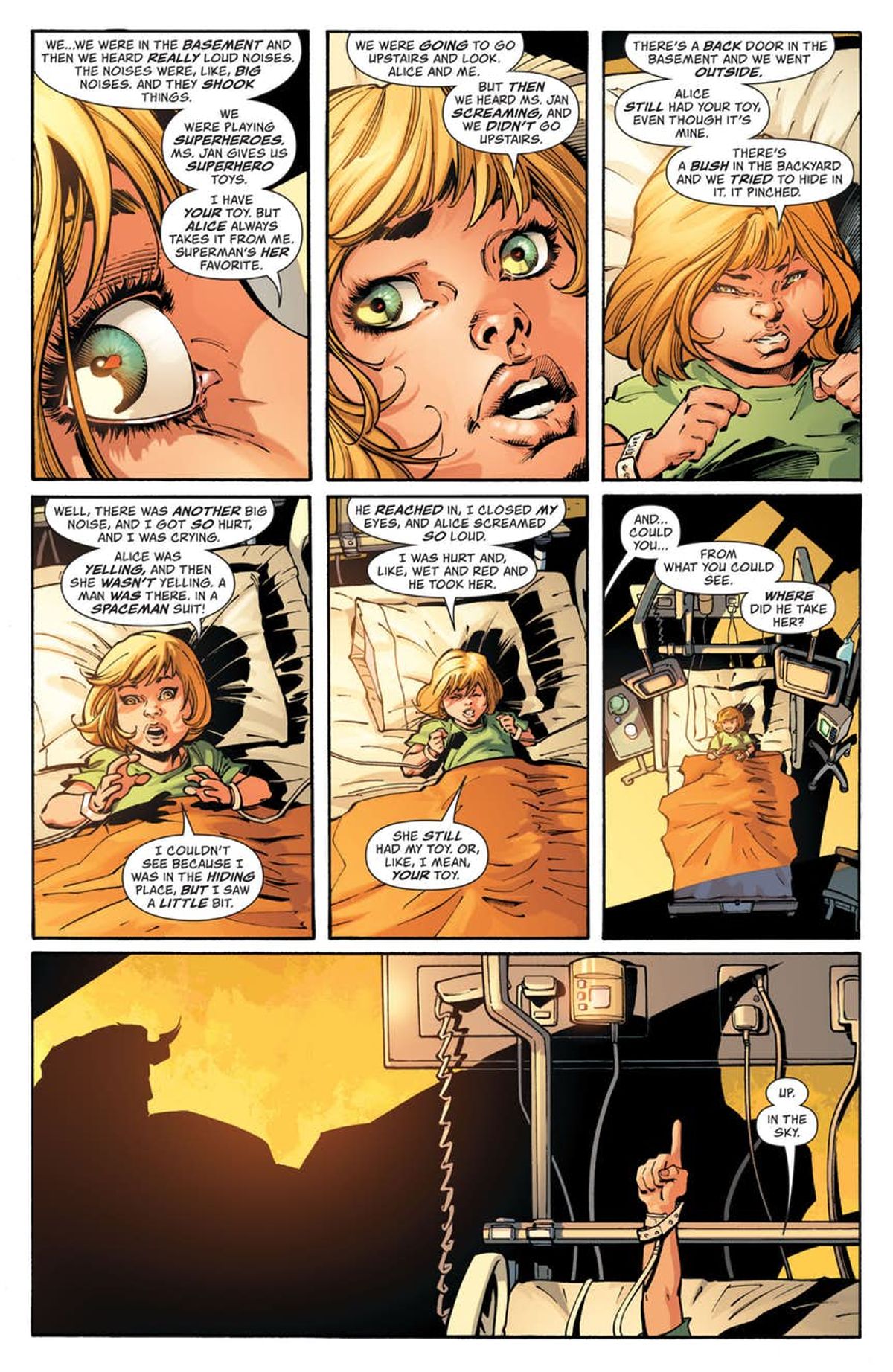 La trama vedrà l'Azzurrone impegnato a salvare una bambina terrestre rapita e portata da qualche parte nella galassia. Non mancheranno apparizioni di personaggi classici come Lois Lane e Perry White, oltre a special guest come Batman e Lanterna Verde.Nella nostra gallery vi proponiamo l'anteprima diffusa dalla DC Comics del capitolo d'esordio di Up in the Sky.