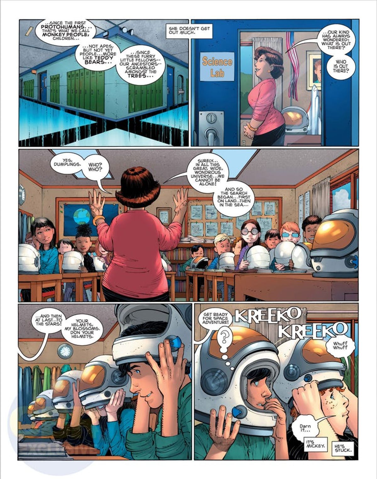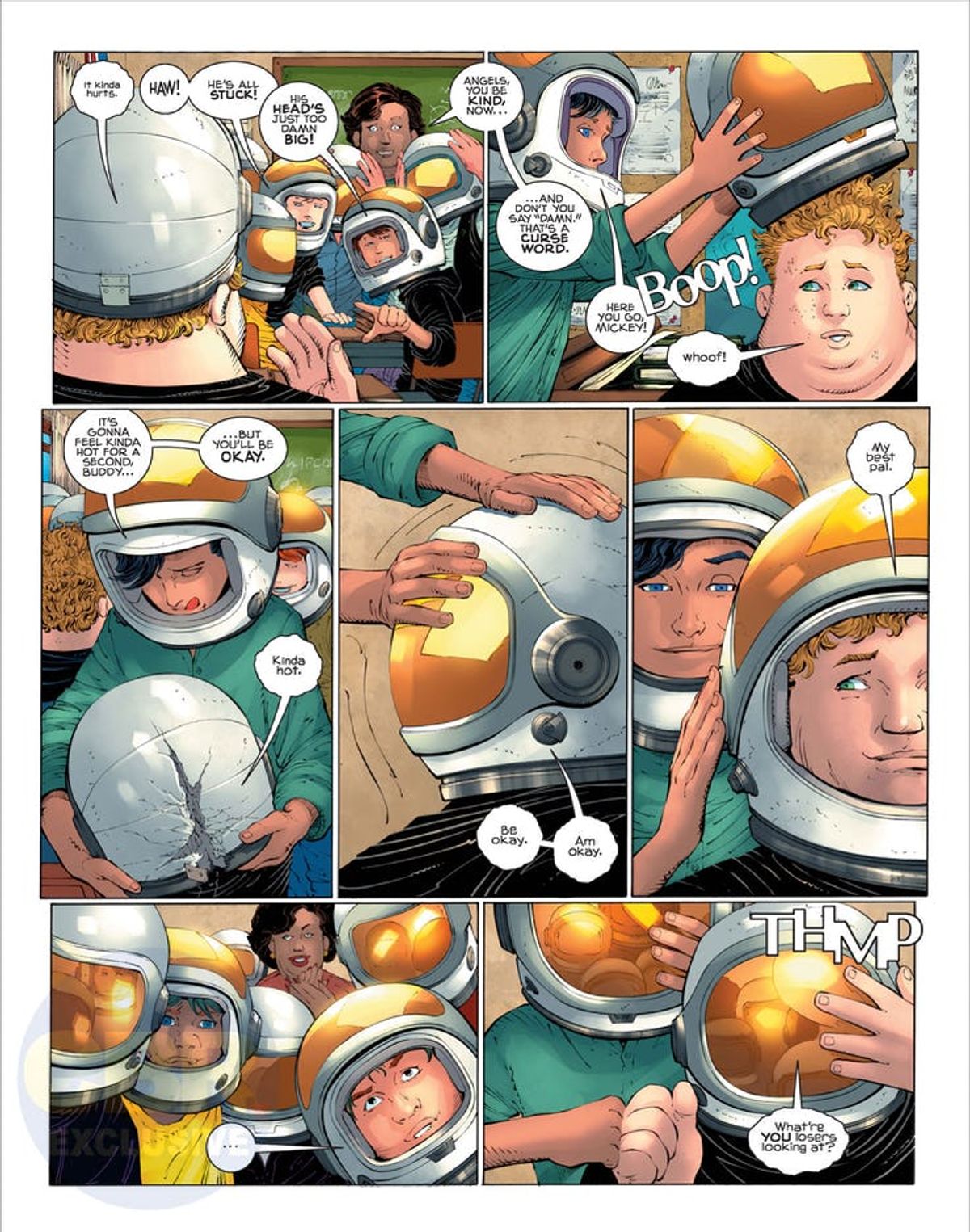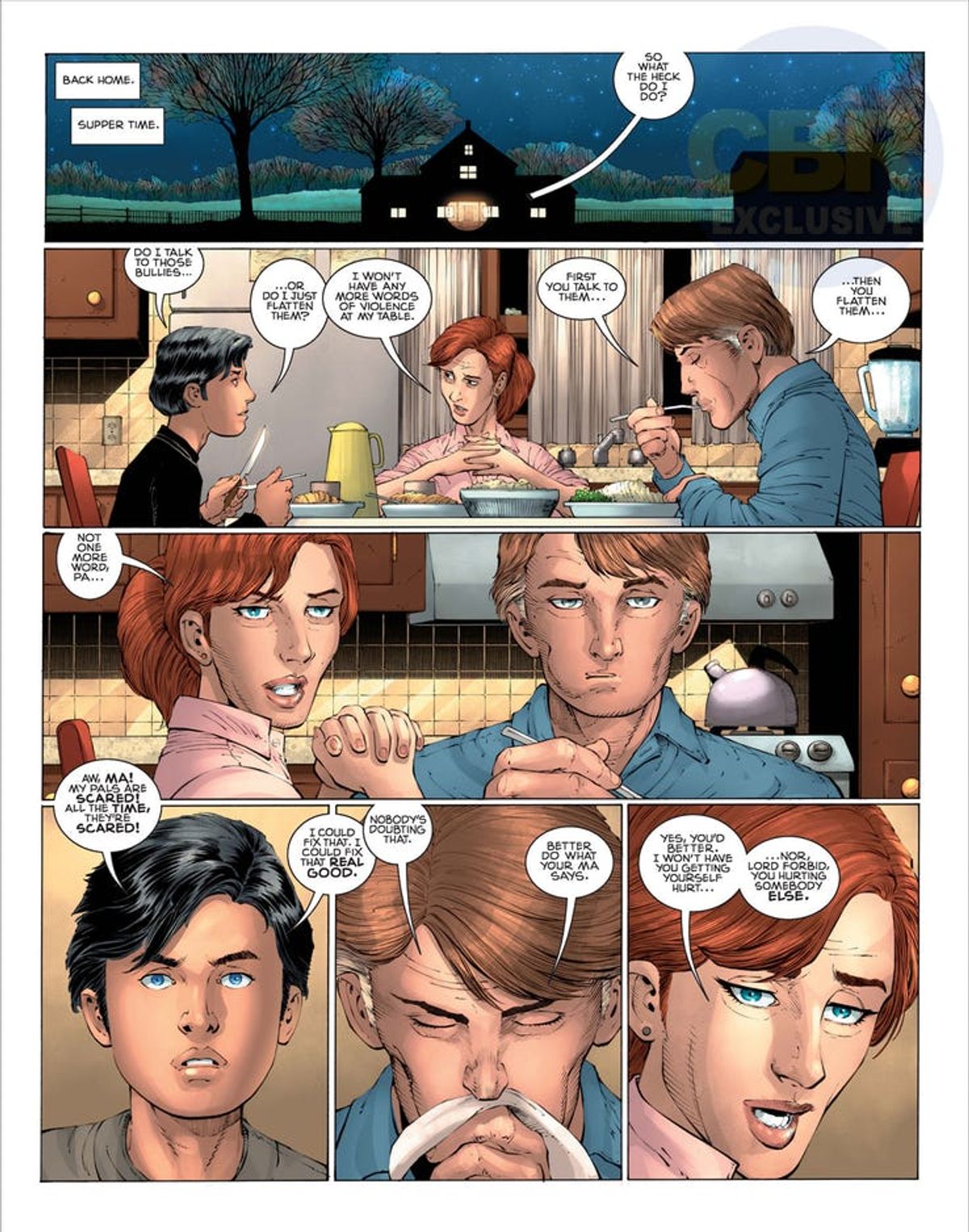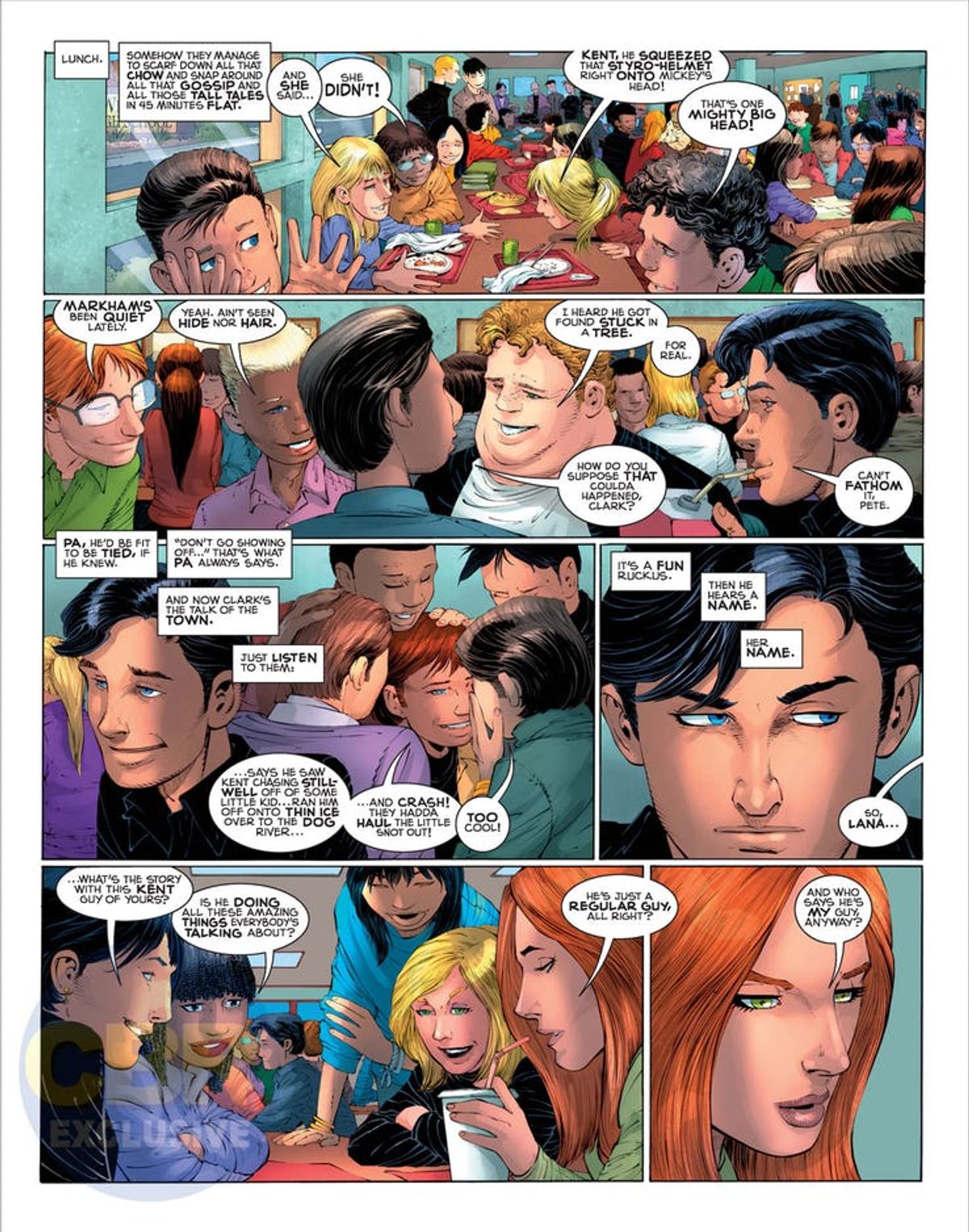Adoro questo processo. Fa paura, perché si tratta di duecento pagine e c'è un sacco di spazio in cui perdersi, un sacco da riempire. E non ho fatto tanto riferimento al passato noto di Superman, nel lavorarci, quanto più a situazioni che conosco io, dai tempi della scuola. Il football, il rapporto con i bulli, le cotte adolescenziali. Laddove ho potuto, ho riutilizzato le mie esperienze giovanili.