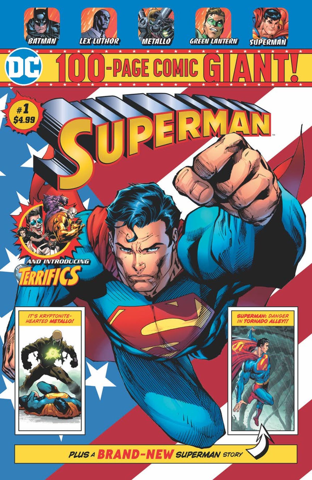 Nel dettaglio, Superman Giant #1 presenterà la prima delle due parti di Endurance, una storia scritta da Jimmy Palmiotti per i disegni di Tom Derenick, nella quale Clark Kent sarà inviato a indagare sul mistero di Tornado Alley. L'albo includerà anche The Terrifics #1 (2018), Green Lantern #1 (2005) e Superman/Batman #1 (2003). A partire da Superman Giant #3, sarà invece proposta una storia inedita in dodici parti intitolata Up in the Sky, scritta da Tom King per i disegni di Andy Kubert.Su Teen Titans Giant #1 apparirà un nuovo fumetto in sei parti scritto da Dan Jurgens per i disegni di Scot Eaton, Wayne Faucher e Jim Charalampidis, con i Giovani Titani che dovranno affrontare un avversario mai visto chiamato Disruptor. L'albo includerà inoltre Super Sons #1 (2017), Sideways #1 (2018) e Teen Titans #1 (2003).