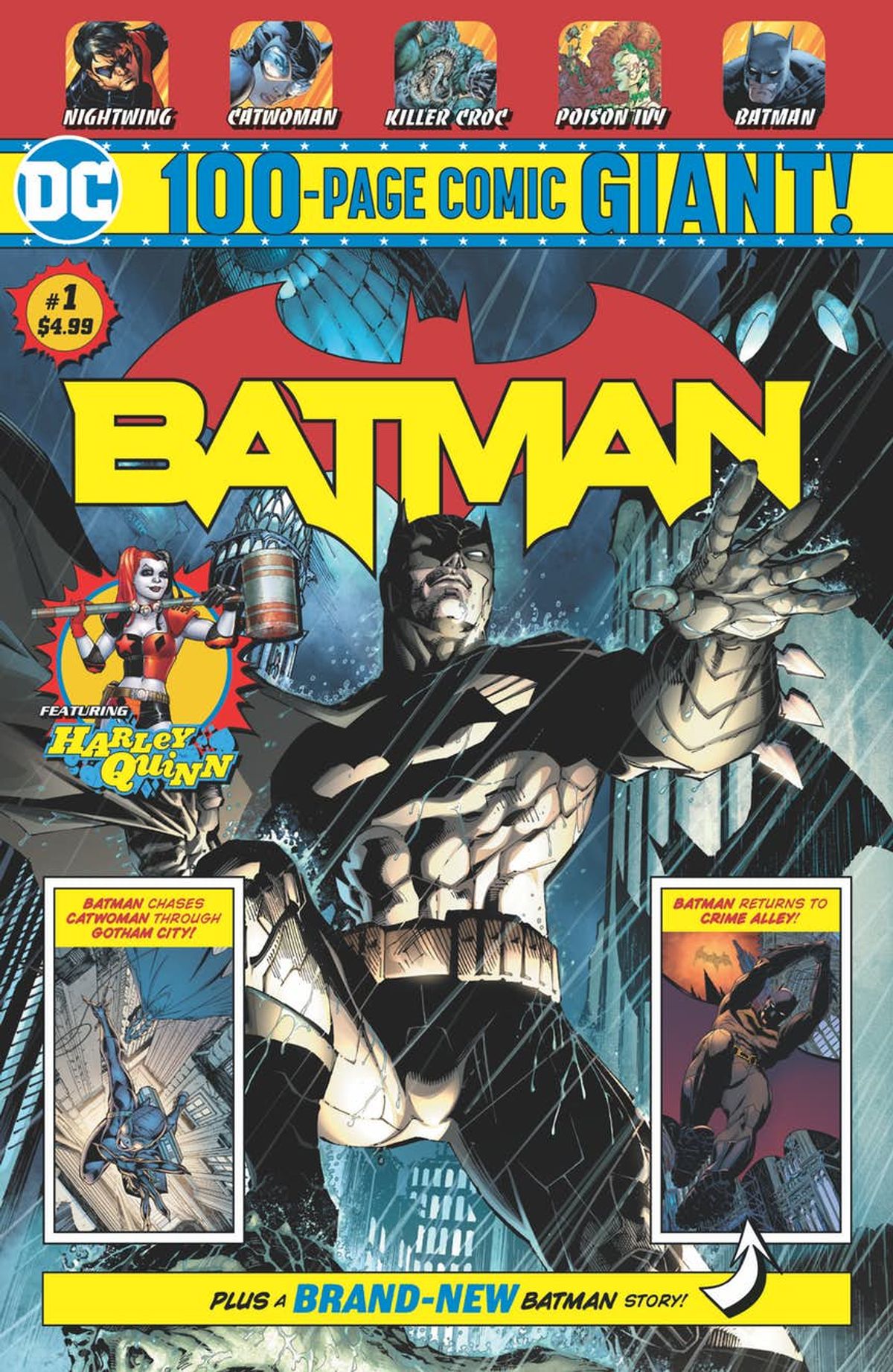 Su Batman Giant #1 sarà invece proposta l'inedito One More Chance, di Jimmy Palmiotti e Patrick Zircher - che riporterà il Cavaliere Oscuro a un iconico e dimenticato luogo del suo passato - assieme a Batman #608 (2002), Nightwing #1 (2011) e Harley Quinn #1 (2011). Sul numero #3 della testata avverrà l'esordio di Brian Michael Bendis come scrittore di una storia di Batman: si intitolerà Universe, sarà di dodici capitoli e sarà disegnata da Nick Derington.