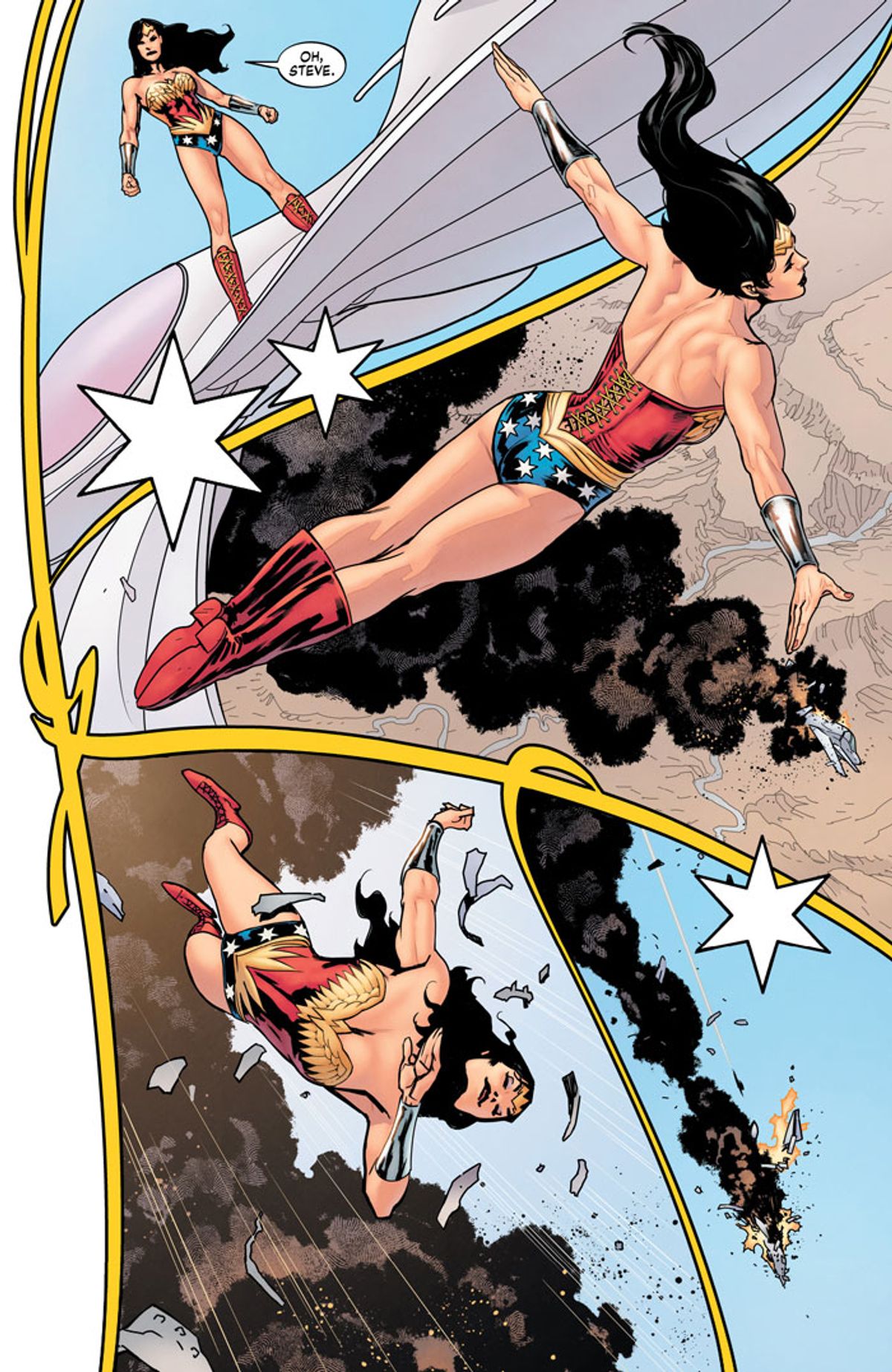 Morrison ha anche parlato del ruolo di Steve Trevor, l'interesse amoroso di Wonder Woman. Un ruolo di cui non c'è bisogno in Terra Uno: ecco dunque che Steve diventa il suo migliore amico, nel secondo volume. Lo sceneggiatore promette sviluppi su di lui e sulla sua identità nel terzo capitolo della trilogia.