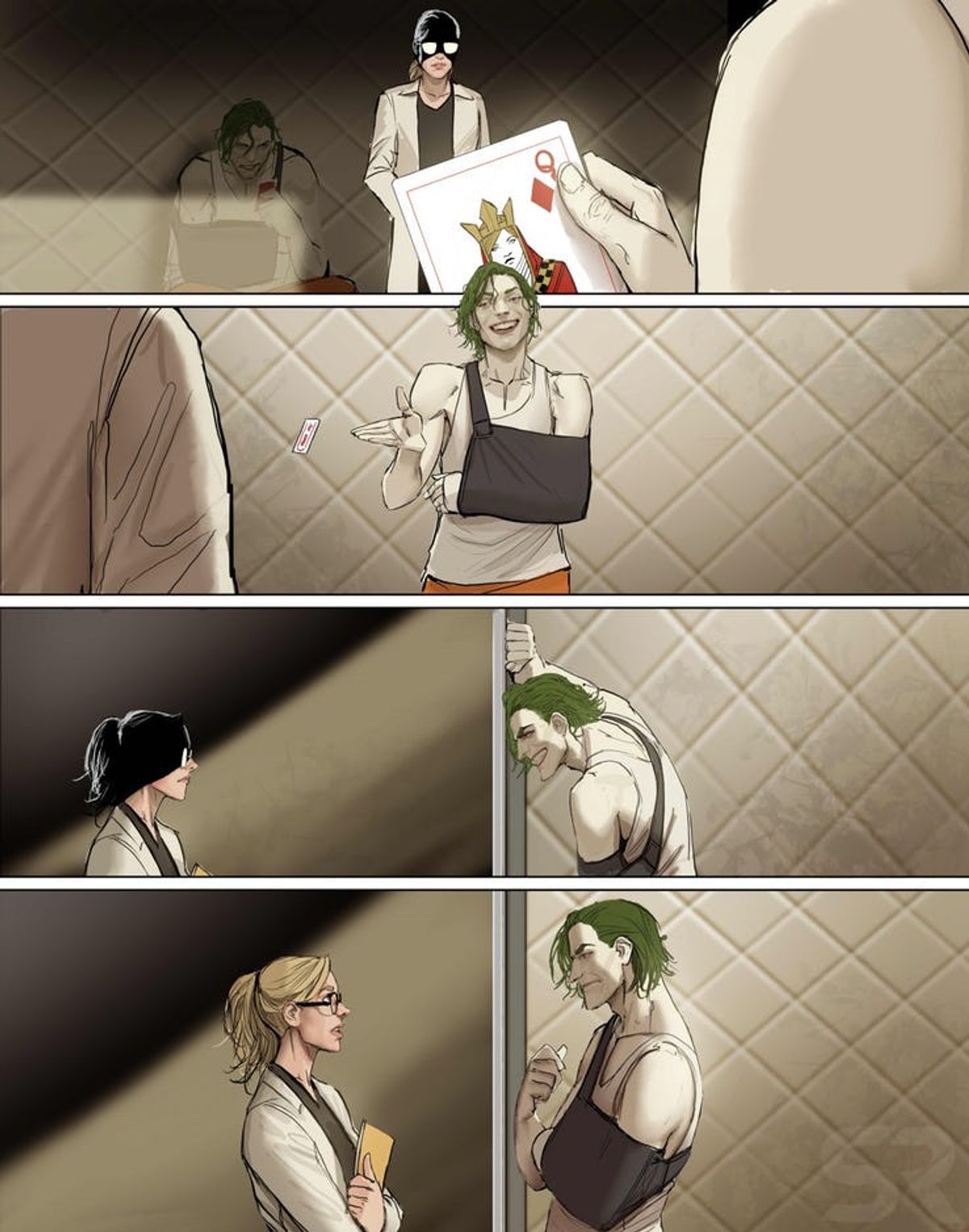 Šejić - Harleen è la storia di una persona imperfetta che voleva fare del bene, una dottoressa che si è innamorata di un suo paziente, il racconto di quanto la sua strada per l'inferno sia stata lastricata di buone intenzioni e di come un sorriso le sia costato l'anima. È una storia di persone buone che crollano, si innamorano, cadono in disgrazia e finiscono a pezzi.