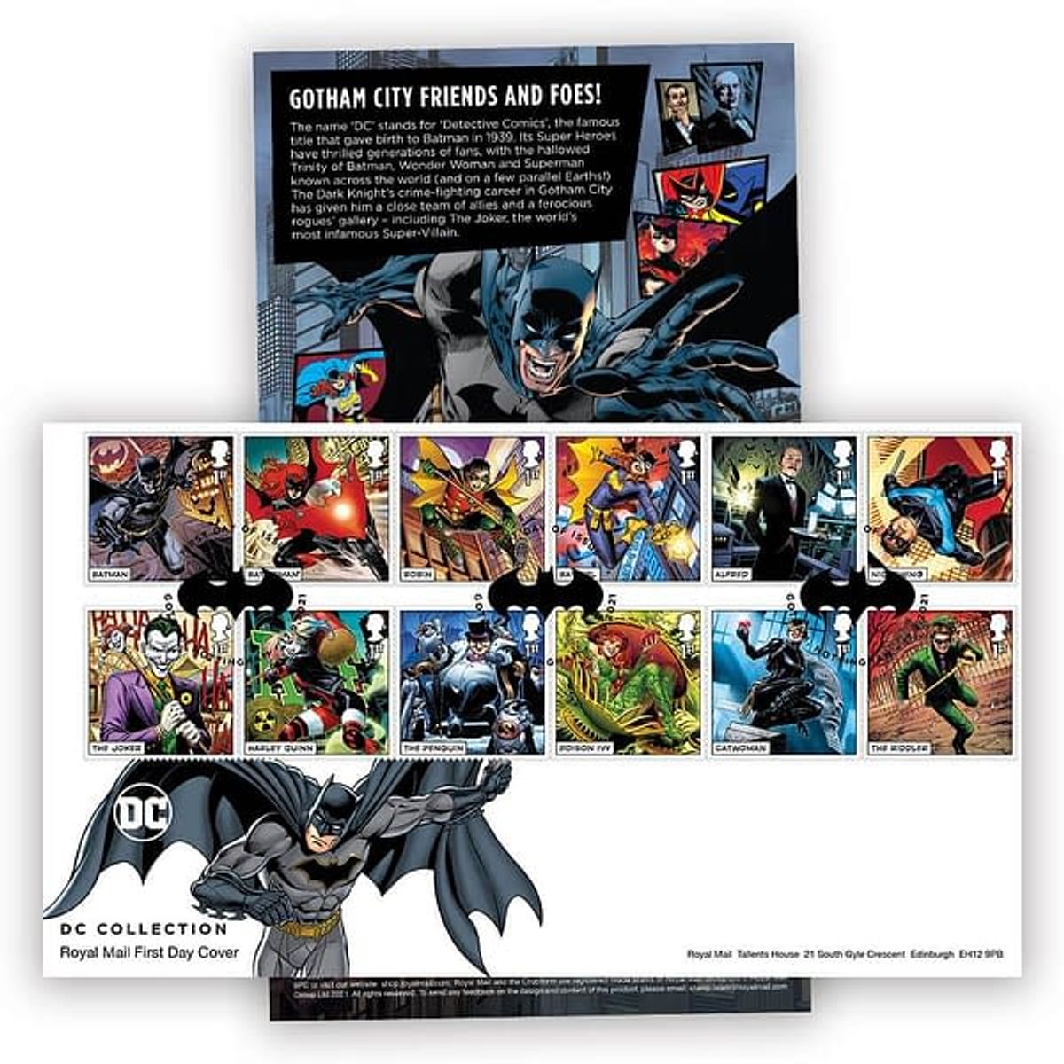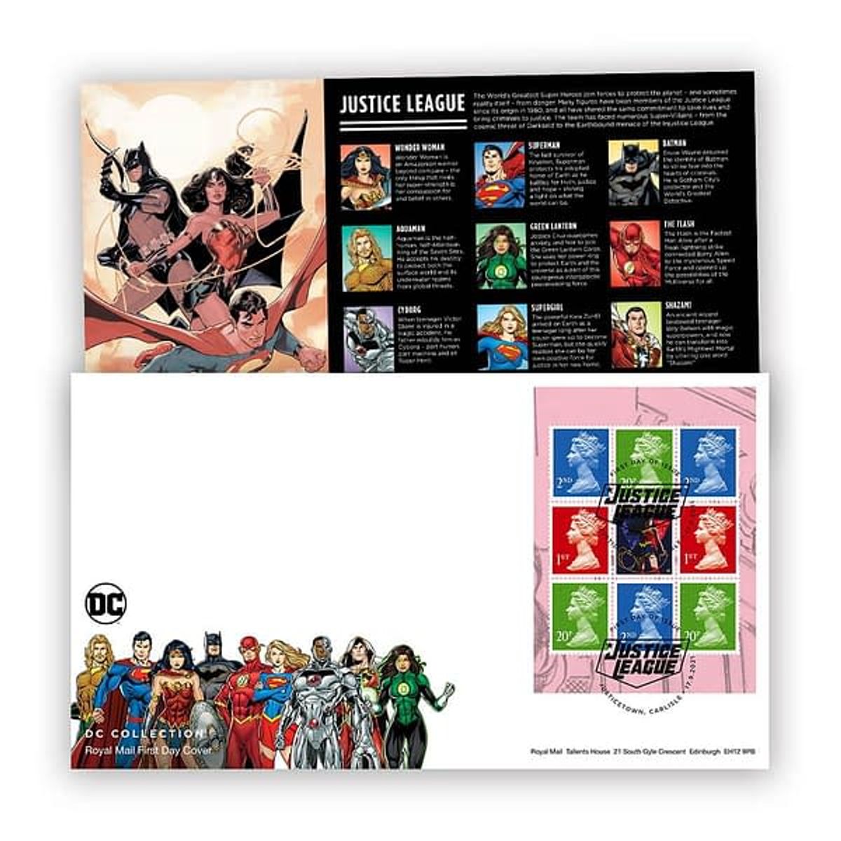 Oltre ai francobolli, la Royal Mail metterà a disposizione degli acquirenti anche edizioni speciali di copertine con timbri postali per luoghi reali i cui nomi ricordano città dei fumetti, come Gotham nel Nottingshire o Justice Town nella regione del Carlisle.