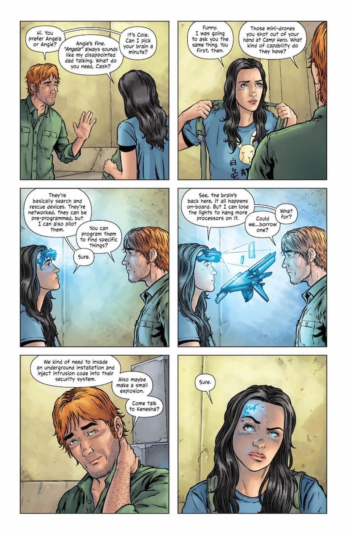 Ho progettato Grifter pensando che volesse passare inosservato, che avrebbe potuto comprare i suoi vestiti a un negozio di roba dell'esercito o della marina. Ecco perché gli ho dato l'aspetto di uno che veste roba usata, tutta quanta di seconda mano. Lucy Blaze è molto più elegante, con roba fatta su misura. E questo mi aiuta moltissimo con il linguaggio del corpo dei personaggi, che cerco di disegnare in pose che si adattino al modo in cui sono vestiti, in cui agiscono.