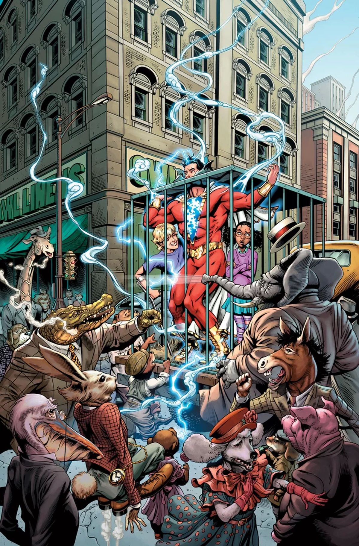 Di Shazam! amo i ragazzini: Billy, Freddy, Mary, Darla, Eugene e Pedro. Per disegnarli al meglio devi abbandonare il tuo punto di vista da adulto e cercare di ricordare come il mondo appariva ai tuoi occhi quando eri bambino. Mi è sempre piaciuto inserire un elemento di giocosità nella mia arte, motivo per il quale questa operazione non mi è risultata difficile. Mi diverto a tornare a questa "modalità bambino". Quando ero piccolo, a Natale, mia madre mi svegliava a mezzanotte per scartare i regali, e mio padre si travestiva da Babbo Natale. Stava in fondo al corridoio, dove c'era l'albero tutto illuminato, intento a lasciare i suoi doni, e noi lo fissavamo in uno stato di totale meraviglia. È qualcosa di cui sarò sempre grato e che mi ha aiutato a partorire un sense of wonder che ancora oggi riesco a instillare nella mia arte.