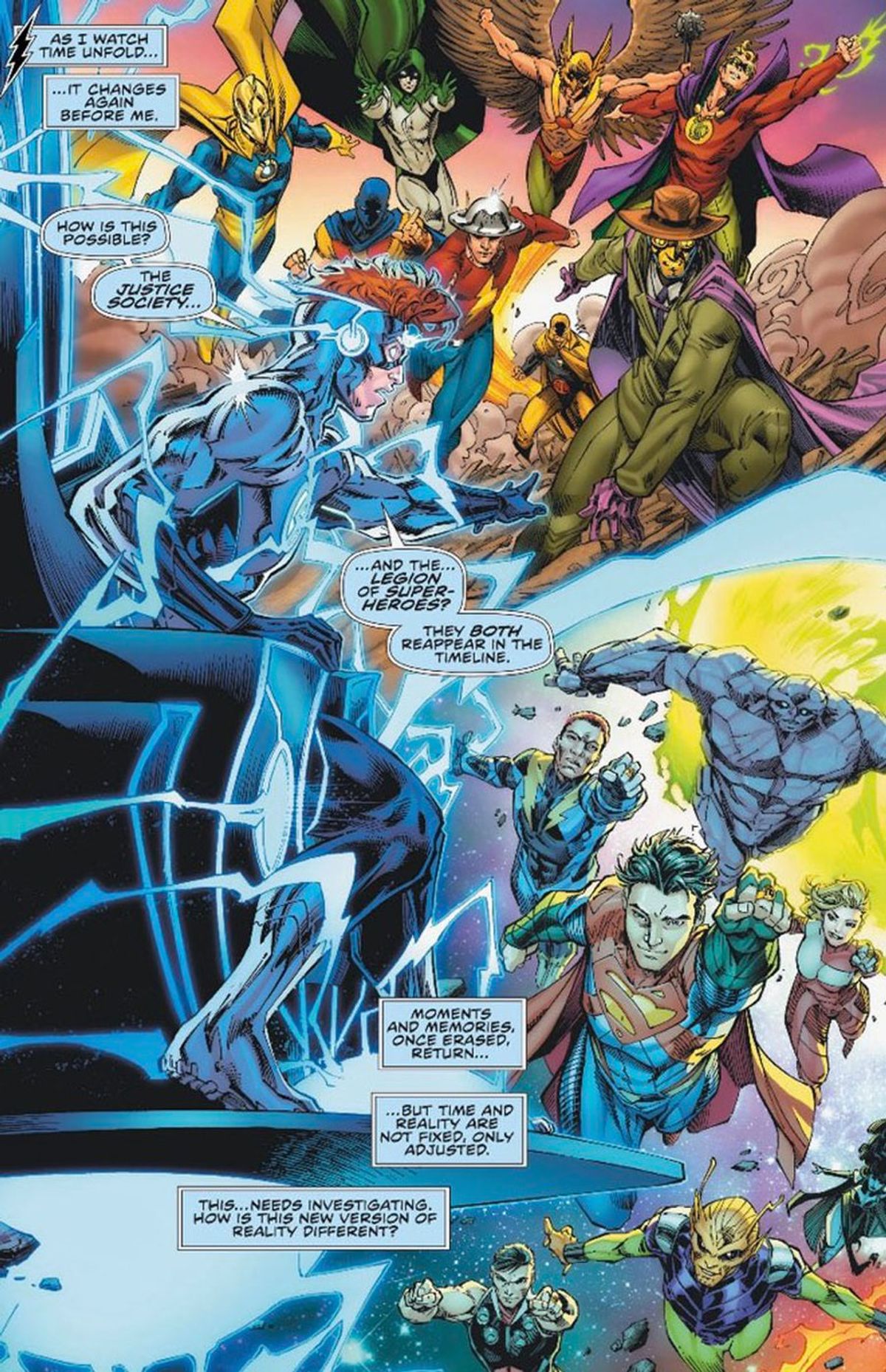 - Il team creativo di Flash ai tempi de I Nuovi 52, Brian Buccellato e Francis Manapul, rivela che Barry è in grado di utilizzare un potere ribattezzato Speed Mind: grazie alla sua mente, può collegarsi non solo alla Forza della Velocità ma anche ad altre linee temporali.- Sempre nell’epilogo di Flash Forward, scopriamo che a seguito delle varie modifiche della timeline, “Tempo. Spazio. La realtà. Tutto è rotto”, come dichiara lo stesso Wally. La dimensione nata con I Nuovi 52 non è solo una delle tante terre alternative del Multiverso, ma, come afferma lo stesso velocista, si tratta dello “stesso evento che si ripete sullo stesso mondo in un momento diverso”.